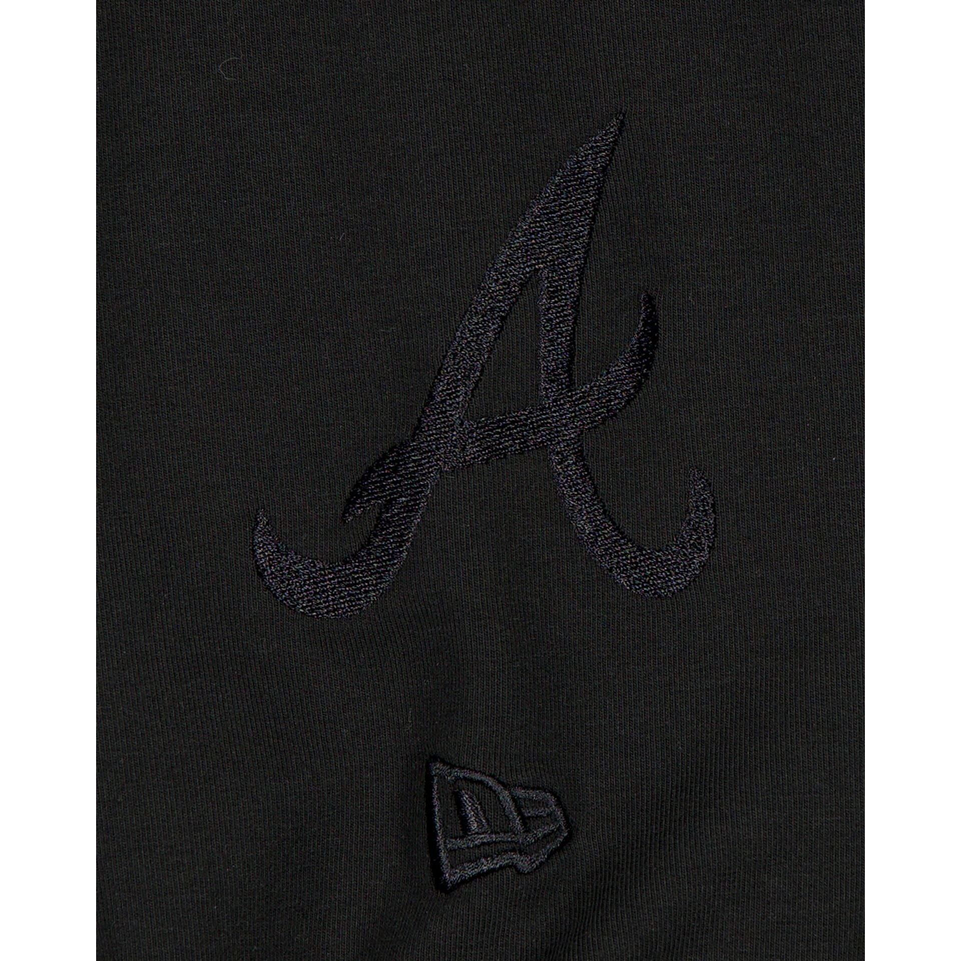 The Atlanta Braves Black on Black Logo Select Hoodie features a satin applique with a tonal stitch Braves wordmark at the chest and an embroidered team logo at the left-wear sleeve.
