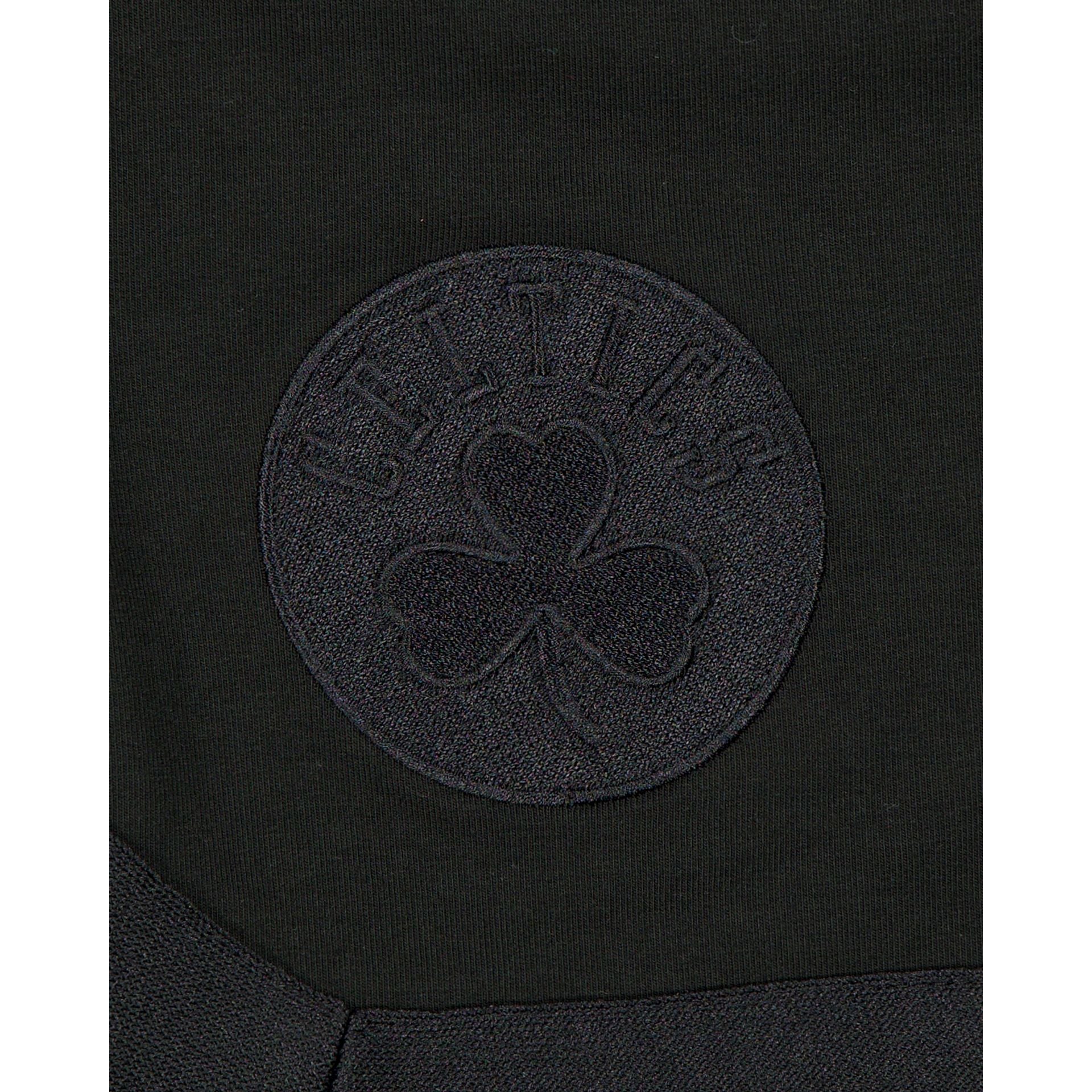 The Boston Celtics Black on Black Logo Select Shorts features an embroidered Celtics logo at the right-wear leg and a satin applique with a tonal stitch team wordmark at the rear left leg.