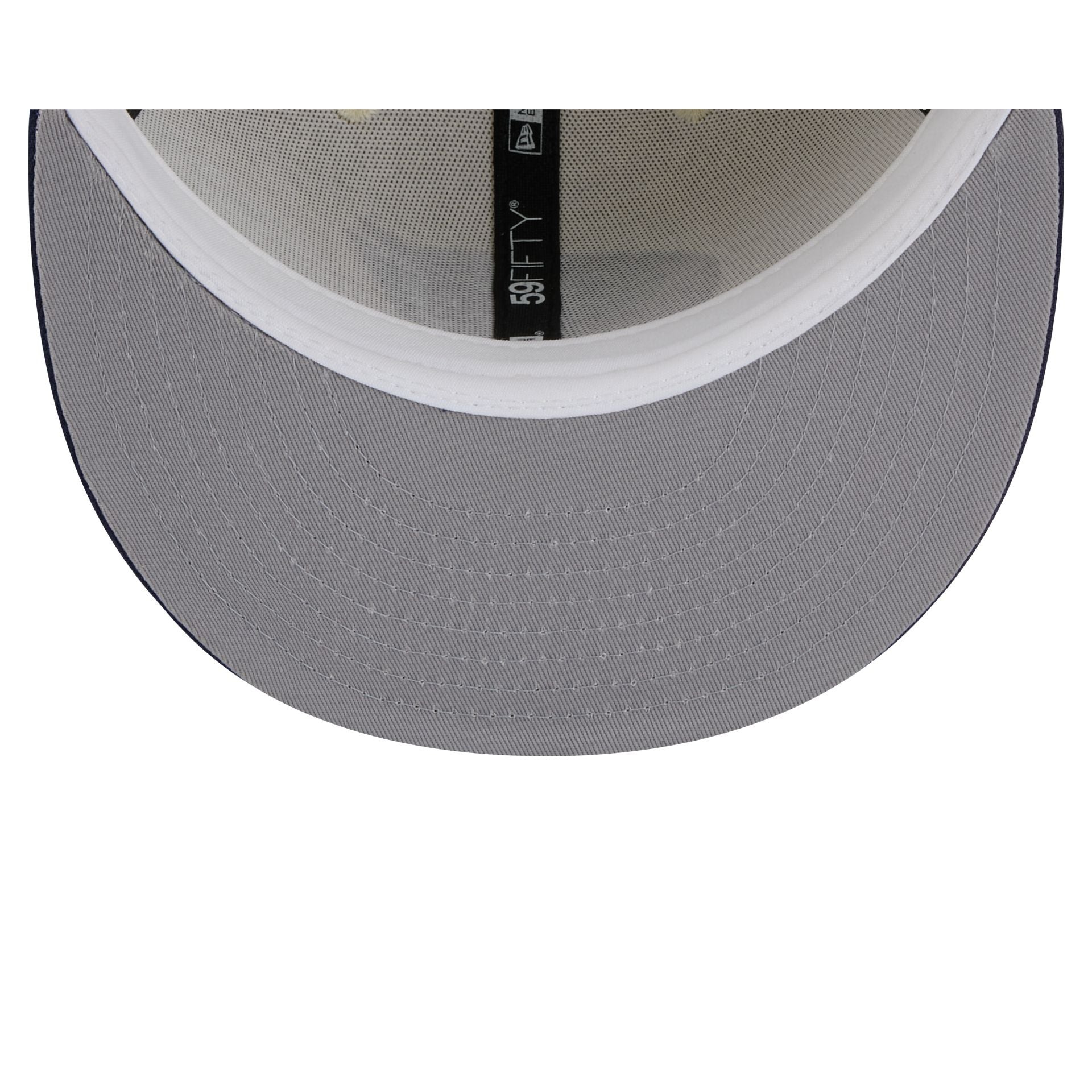 The Columbus Blue Jackets Chrome White 59FIFTY Fitted Cap features an embroidered Blue Jackets logo at the front panels with a matching NHL Shield at the rear and a gray undervisor.