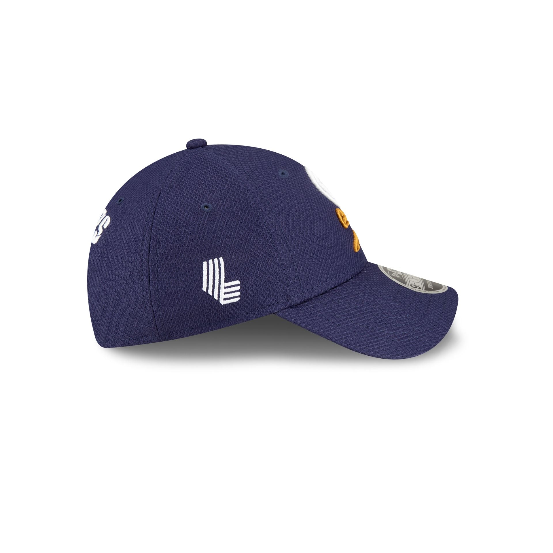 The Crushers GC 9FORTY Stretch Snap Cap features an embroidered Crushers GC logo at the front panels with a matching team wordmark above a snapback closure at the rear and a LIV Golf logo at the right-wear side.
