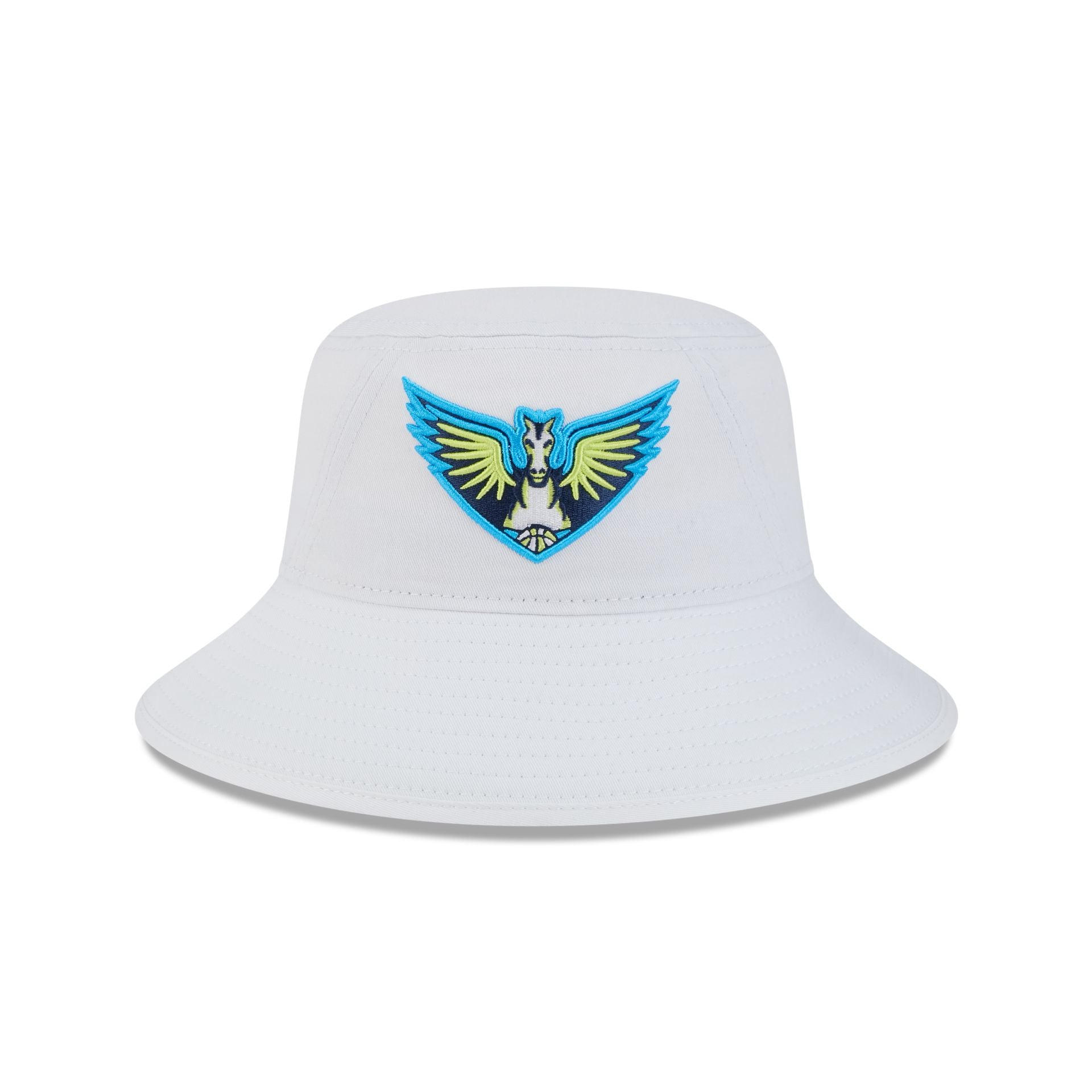 The Dallas Wings Optic White Bucket Hat features an embroidered Wings logo at the front with a matching New Era Flag at the left-wear side.