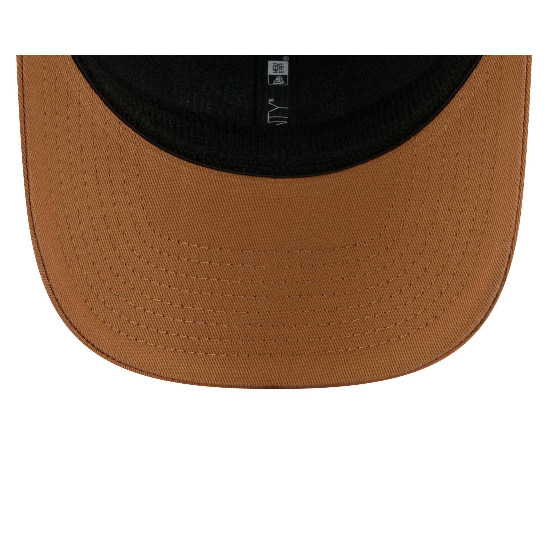 The Hartford Whalers Bronze 9SEVENTY Trucker features an embroidered Whalers Vintage logo at the front panels with a matching woven team tag at a snapback closure at the rear.