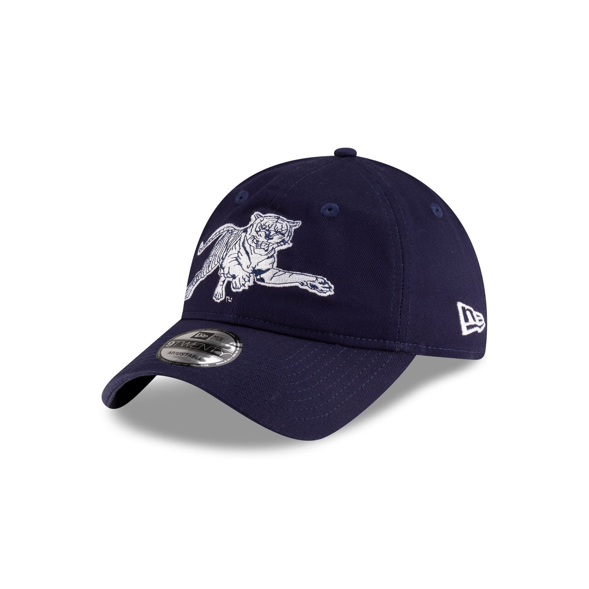 The Jackson State Tigers Navy 9TWENTY Adjustable Cap features an embroidered Tigers logo at the front panels with an adjustable D-Ring closure at the rear.