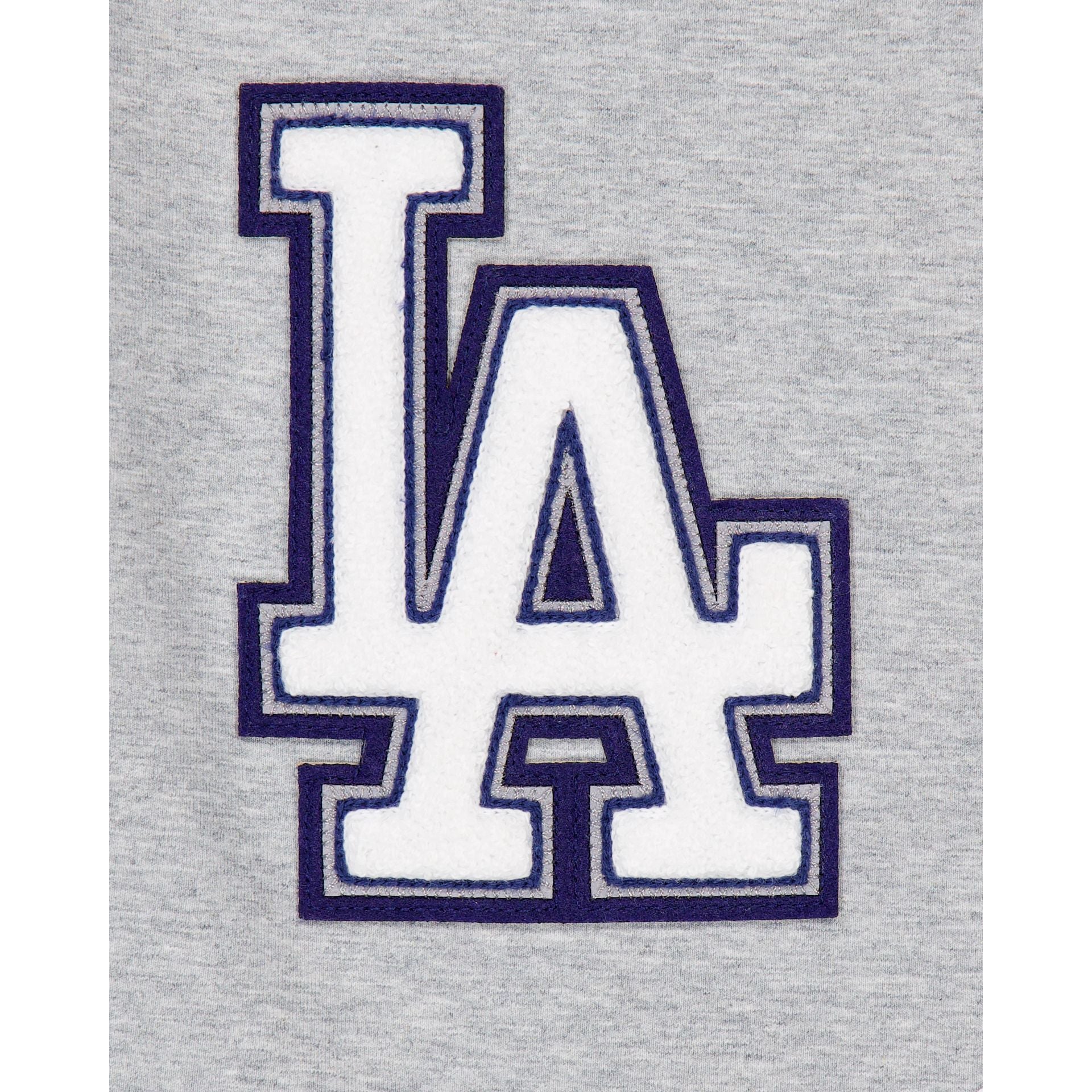 The Los Angeles Dodgers Gray Logo Select Shorts features a chenille applique Dodgers logo at the left leg with an alternate team logo patch embroidered at the right leg.
