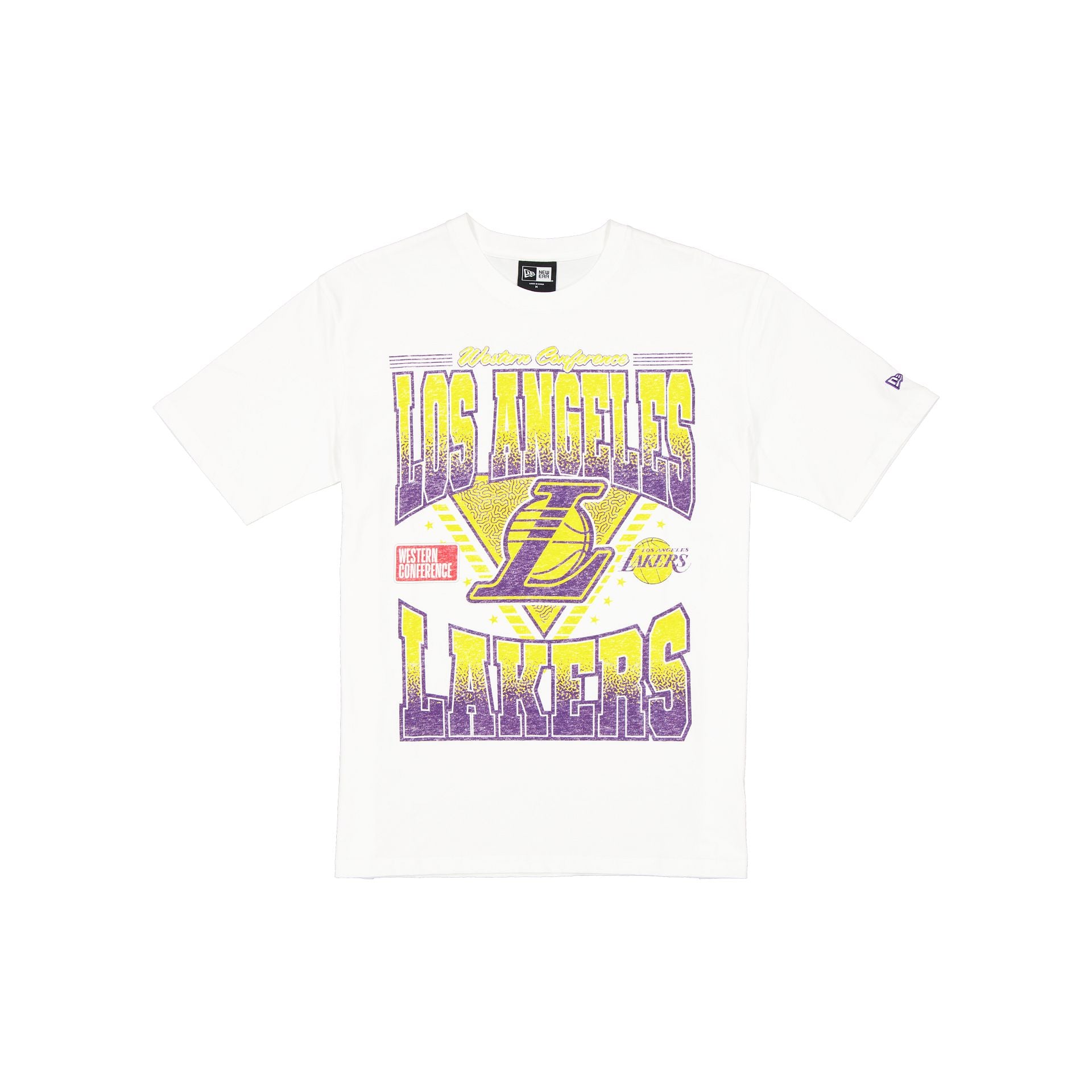 The Los Angeles Lakers Sport Classics Washed Optic White T-Shirt features a screen-printed Lakers graphic at the front.