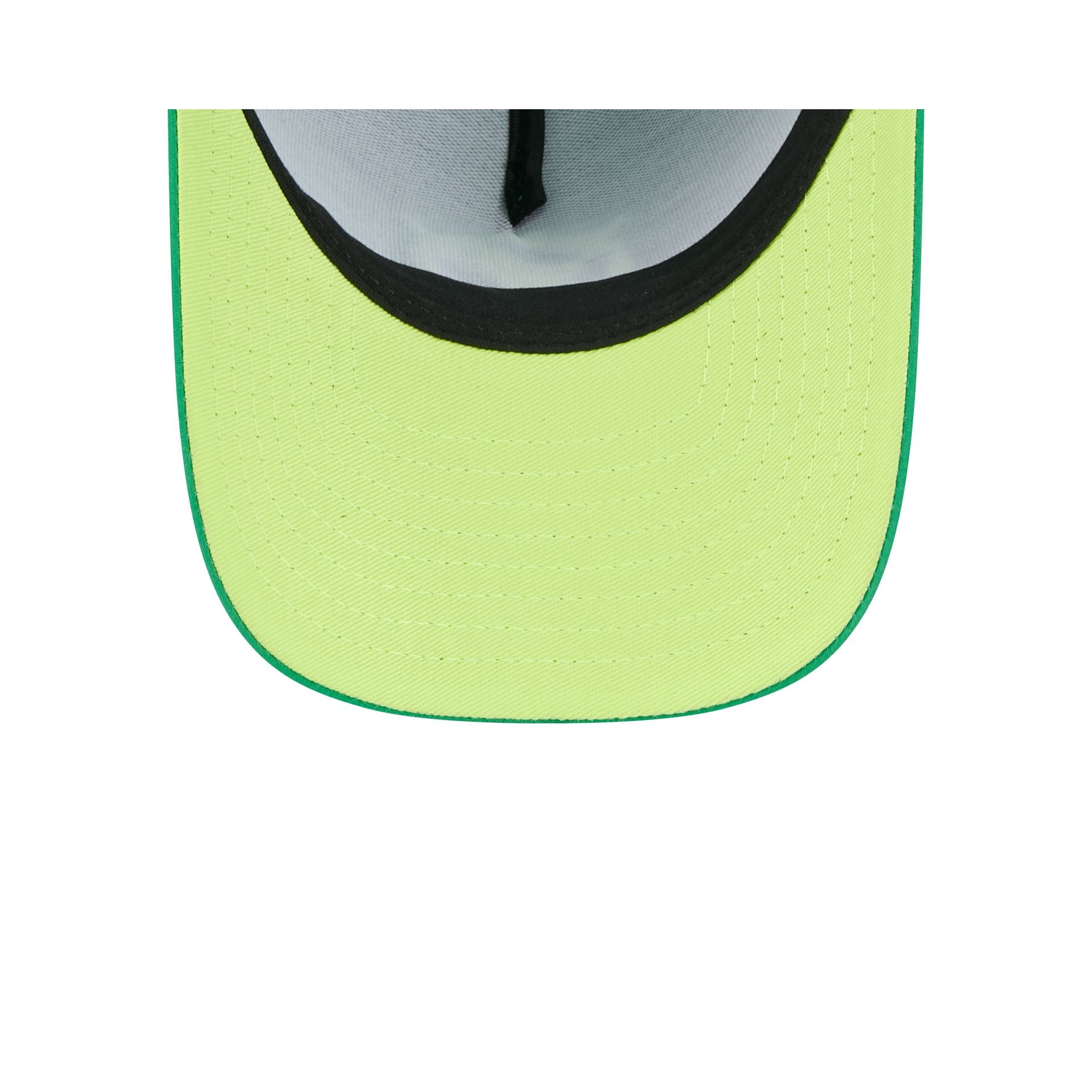 The Miami Heat Tee Time 9FORTY M-Crown A-Frame Snapback features an embroidered Heat golf logo at the front panels with a snapback closure at the rear and a neon green undervisor.