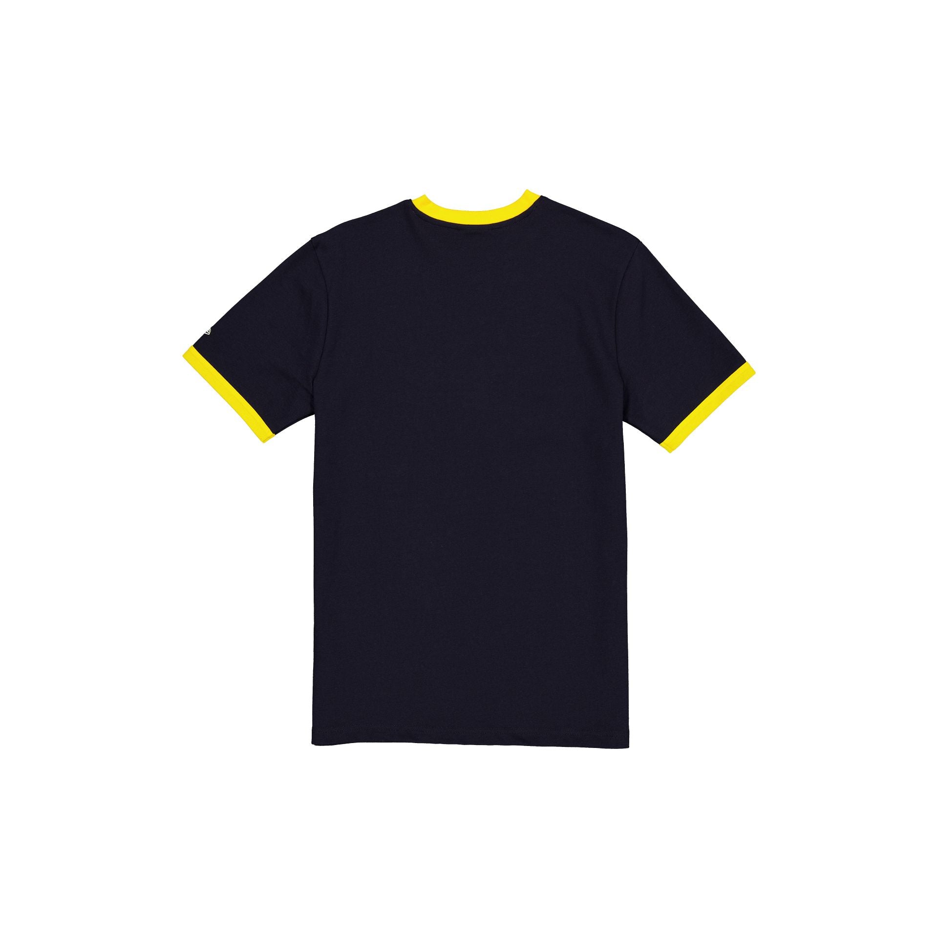 The Milwaukee Brewers Throwback Team T-Shirt features a screen-printed Brewers wordmark and embroidered team logo at the front with a New Era jock tag at the left hip. This t-shirt has a v-neckline.