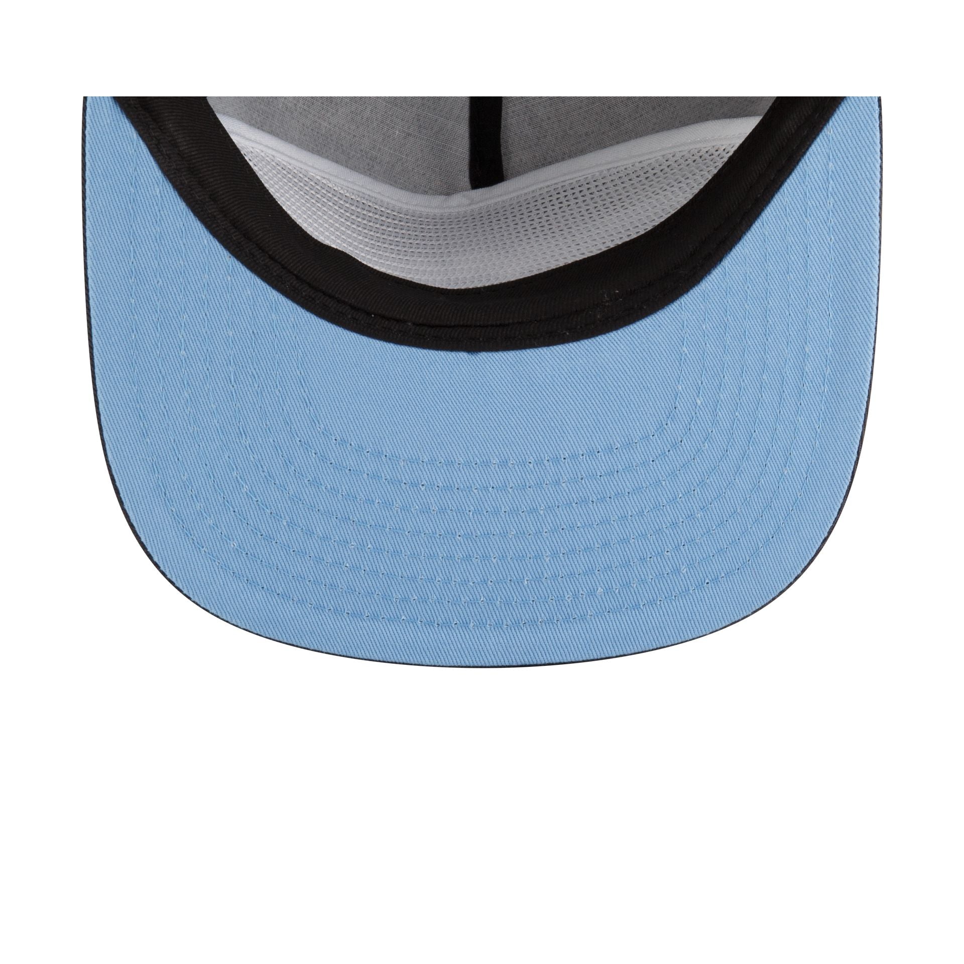 The New Era Cap Beauty Golfer Hat features an embroidered Beauty script at the front panels with a Buffalo patch at the right-wear side and a blue undervisor.