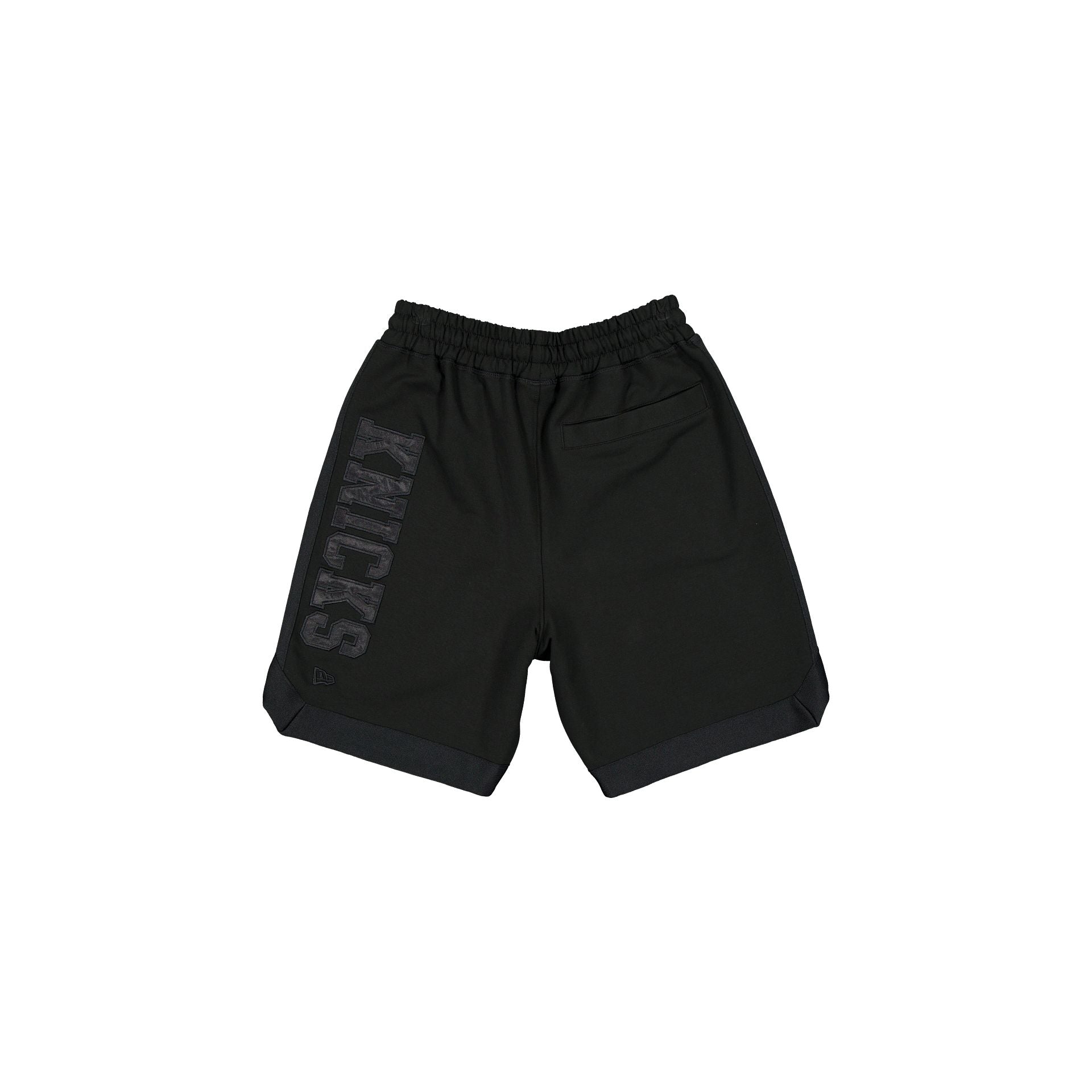 The New York Knicks Black on Black Logo Select Shorts features an embroidered Knicks logo at the right-wear leg and a satin applique with a tonal stitch team wordmark at the rear left leg.
