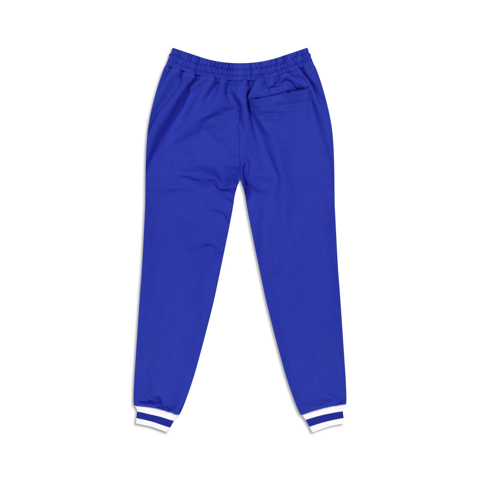 The New York Knicks Logo Select Jogger features a chenille applique Knicks logo and embroidered wordmark at the left leg with an alternate team logo at the right ankle.