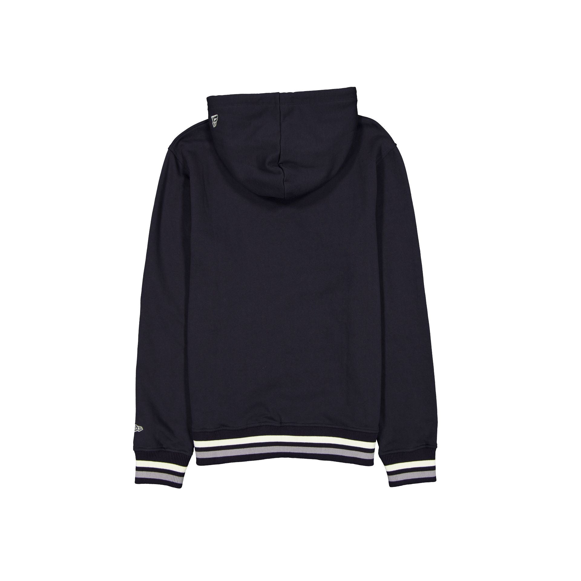 The New York Yankees Throwback Hoodie features a felt applique Yankees wordmark at the front with kangaroo pockets. adjustable drawstrings at the hood. and a New Era jock tag at the left pocket.