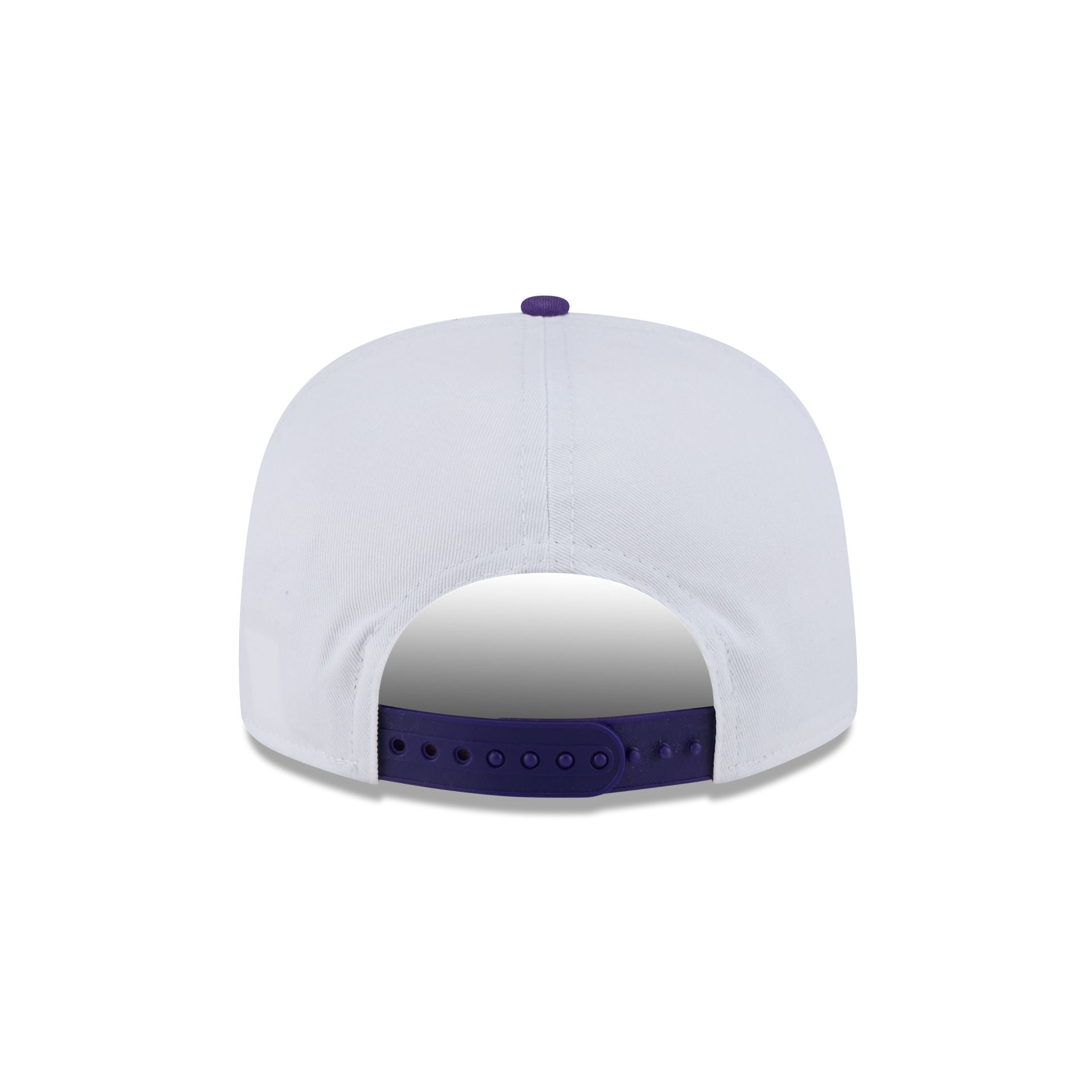 The NFL Super Bowl XXXI Championship Pin Golfer features an embroidered Super Bowl XXXI patch with dueling Green Bay Packers and New England Patriots pins and team wordmarks at the front panels. Additional details include a purple visor with green undervisor and an adjustable snapback closure at the rear.