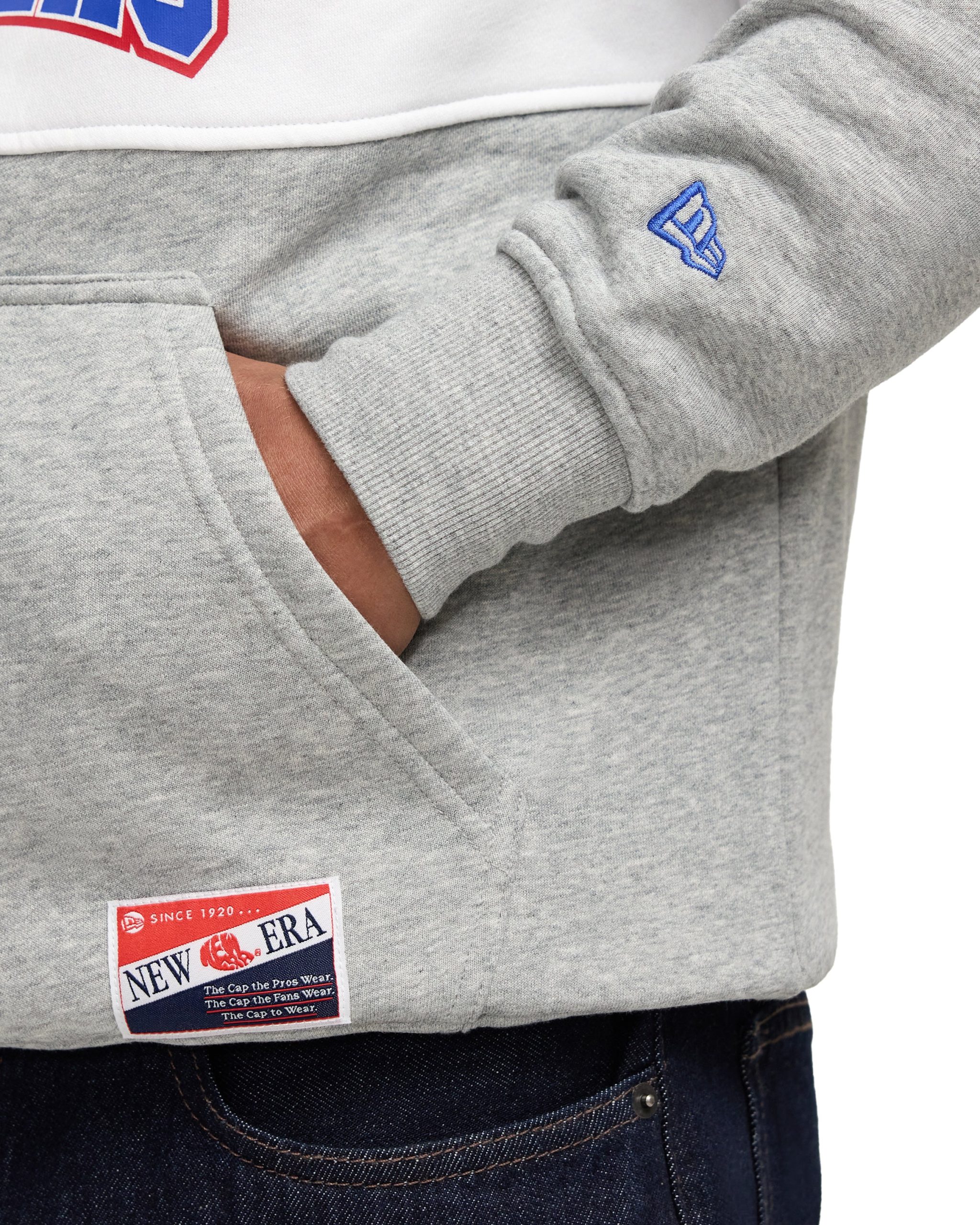 The Philadelphia Flyers Throwback Color Block Hoodie features a screen-printed Flyers logo and team wordmark at the front with a quarter zip closure at the collar.