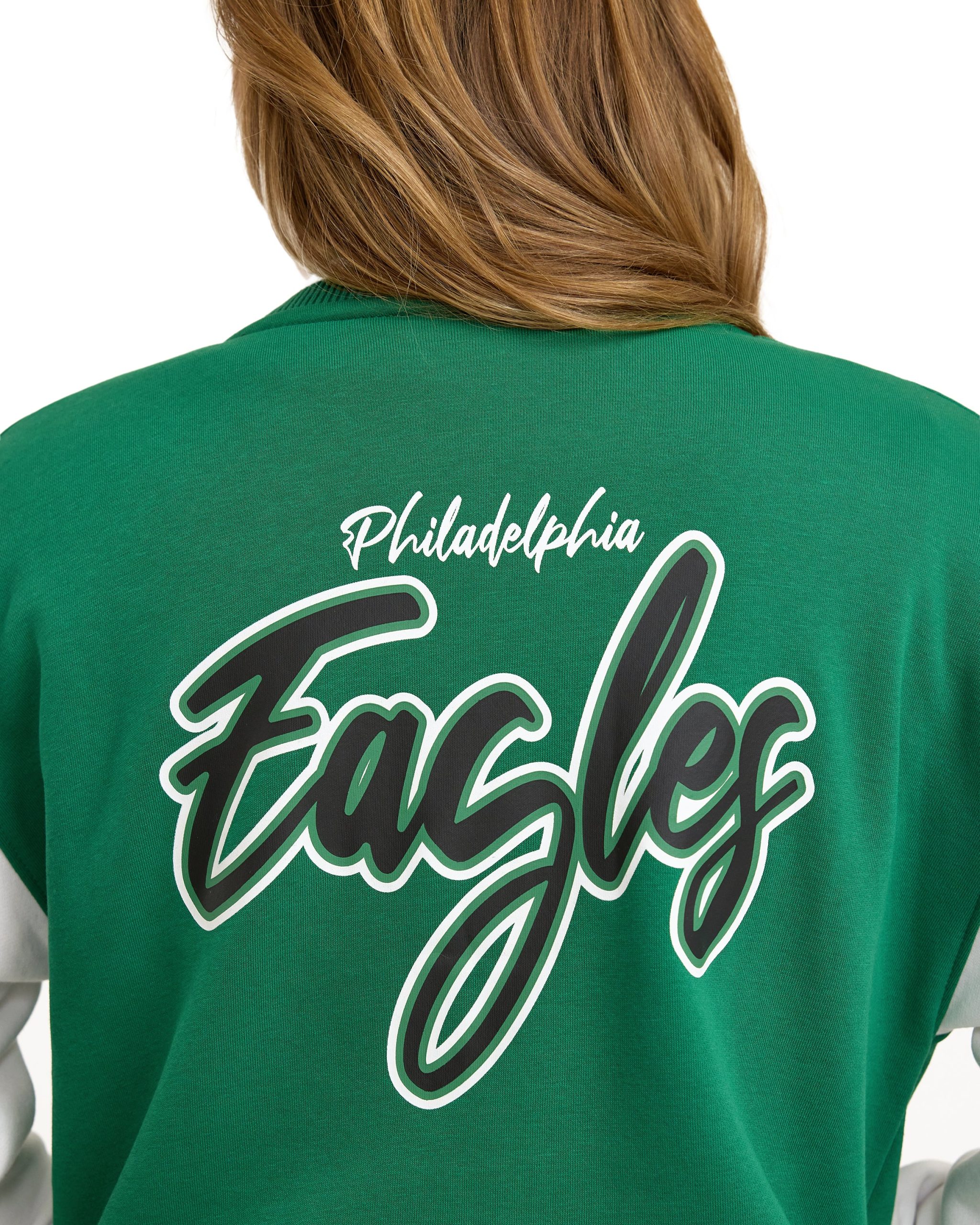 The Philadelphia Flyers Throwback Fleece Women’s Jacket features a chenille applique Flyers logo at the left chest with a snap button closure and a screen-printed team wordmark at the rear.
