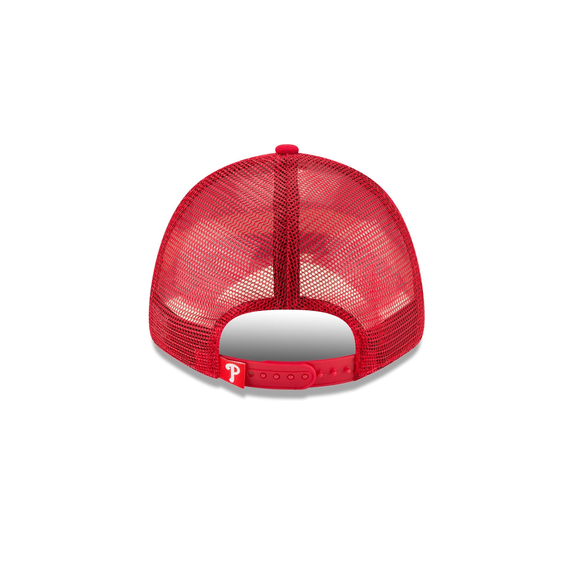 The Philadelphia Phillies 9FORTY Trucker features an embroidered Phillies at the front panels with a woven tab displaying the team logo and a snapback closure at the rear.