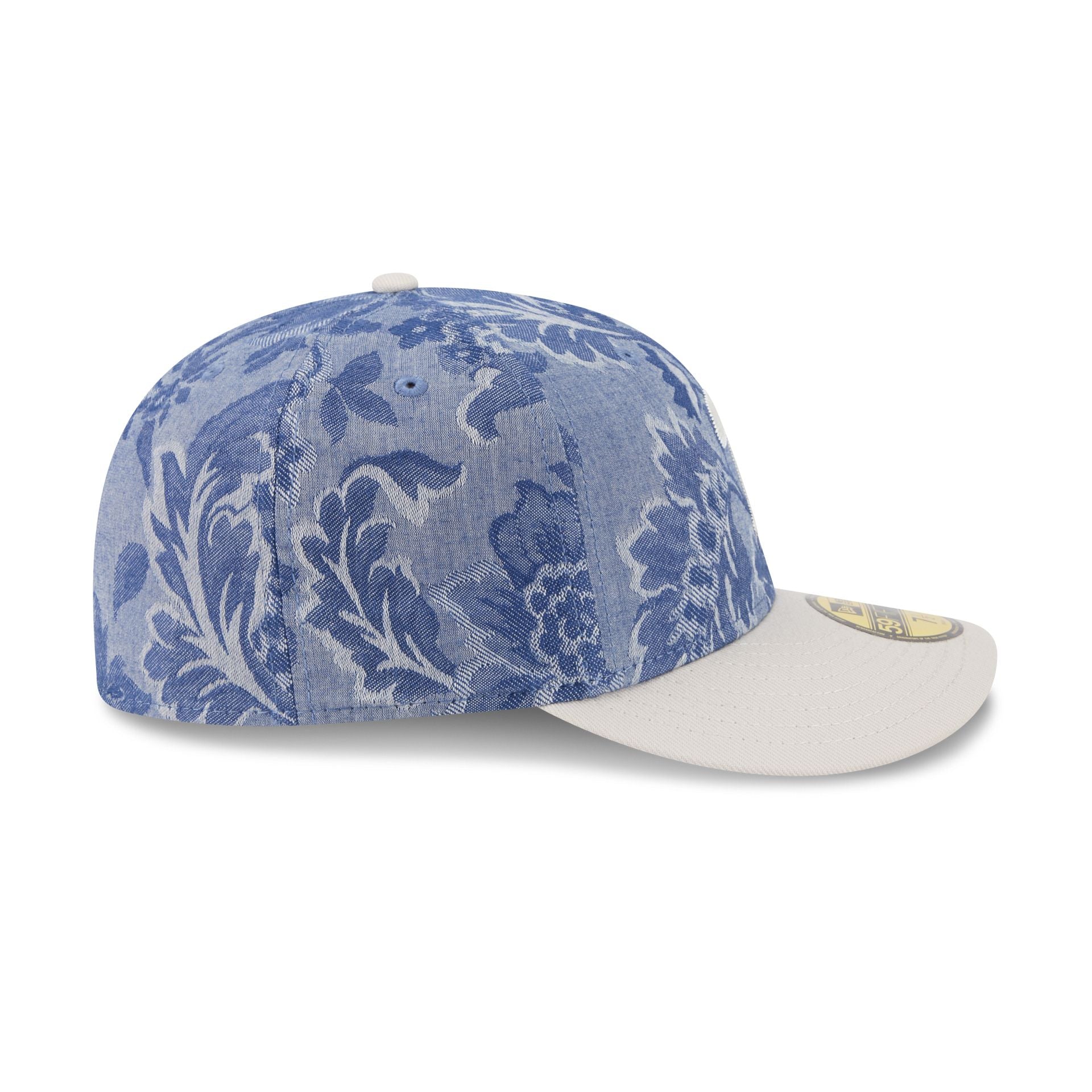 The Philadelphia Phillies Two-Tone Denim 59FIFTY Fitted Cap features an embroidered Phillies logo at the front panels against a specialty Japanese milled gobline chambray fabrication from Three Looms Japan Fabrics throughout the cap. Additional details include an MLB Batterman logo at the rear and a gray undervisor.