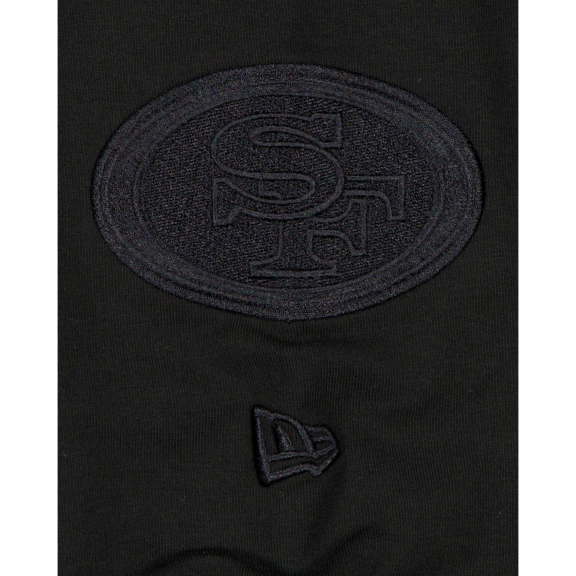 The San Francisco 49ers Black on Black Logo Select Hoodie features a satin applique with a tonal stitch 49ers wordmark at the chest and an embroidered team logo at the left-wear sleeve.