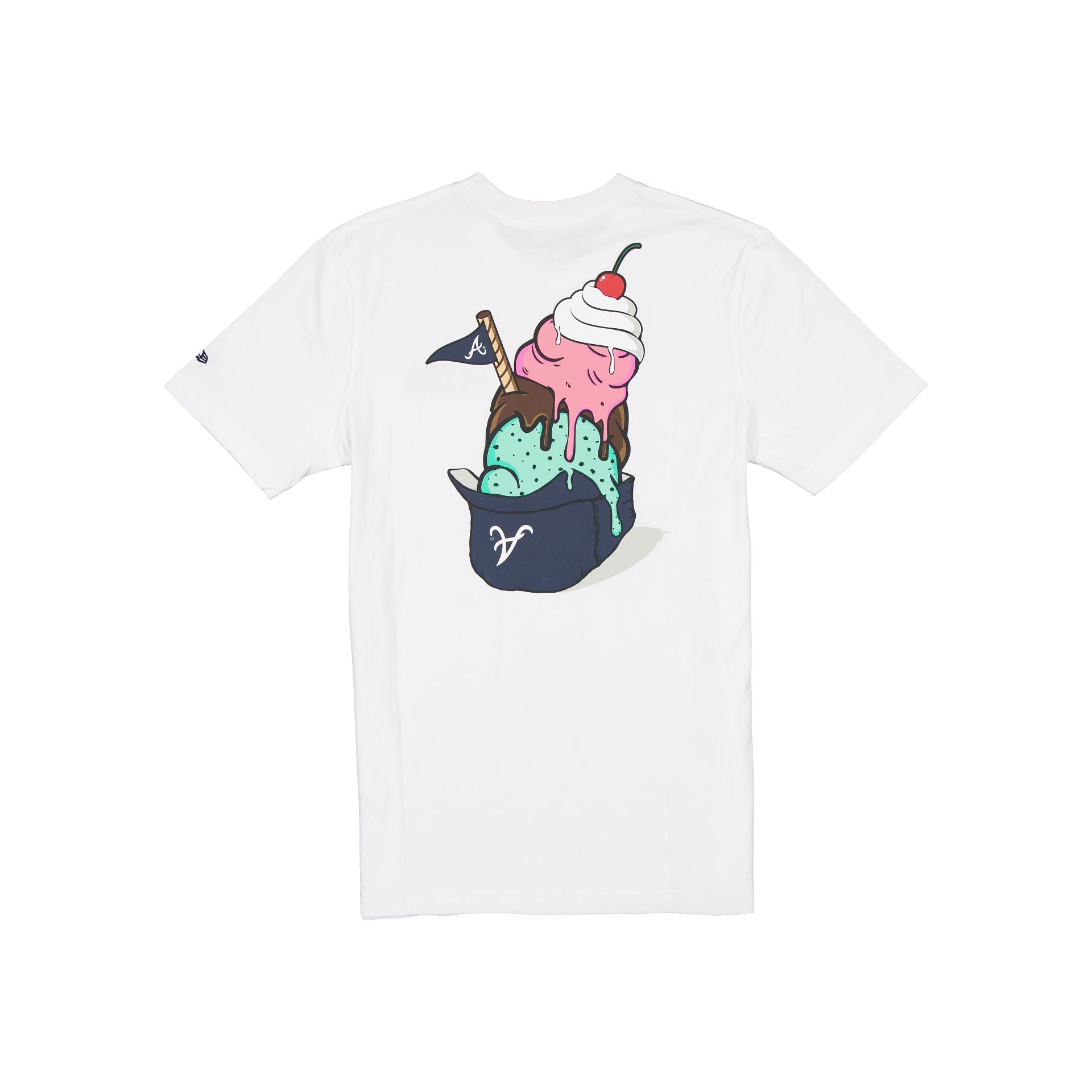 The Atlanta Braves Game Day Ice Cream T-Shirt features a screen-printed Braves logo at the left chest with an ice cream graphic at the rear.