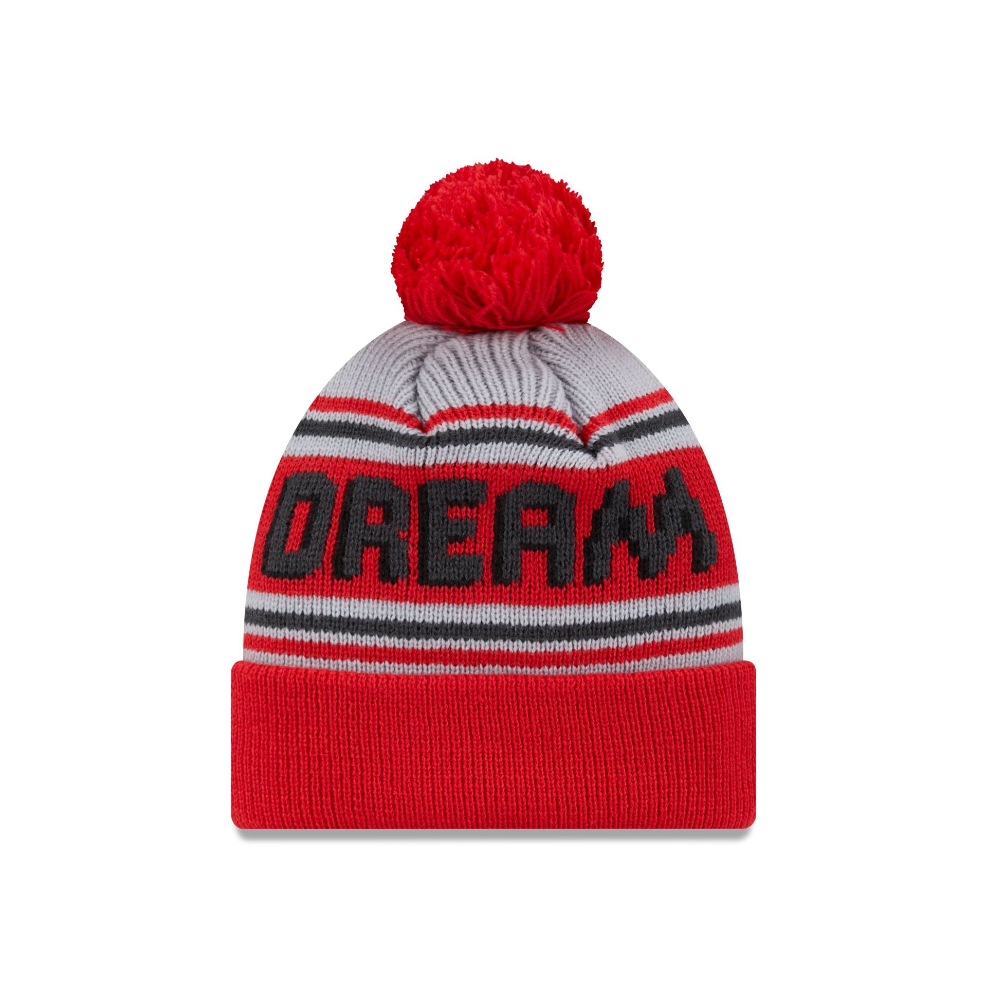The Atlanta Dream 2024 Team Pom Knit features a Dream logo at the brim with a team wordmark at the crown and a one-time removable pom.
