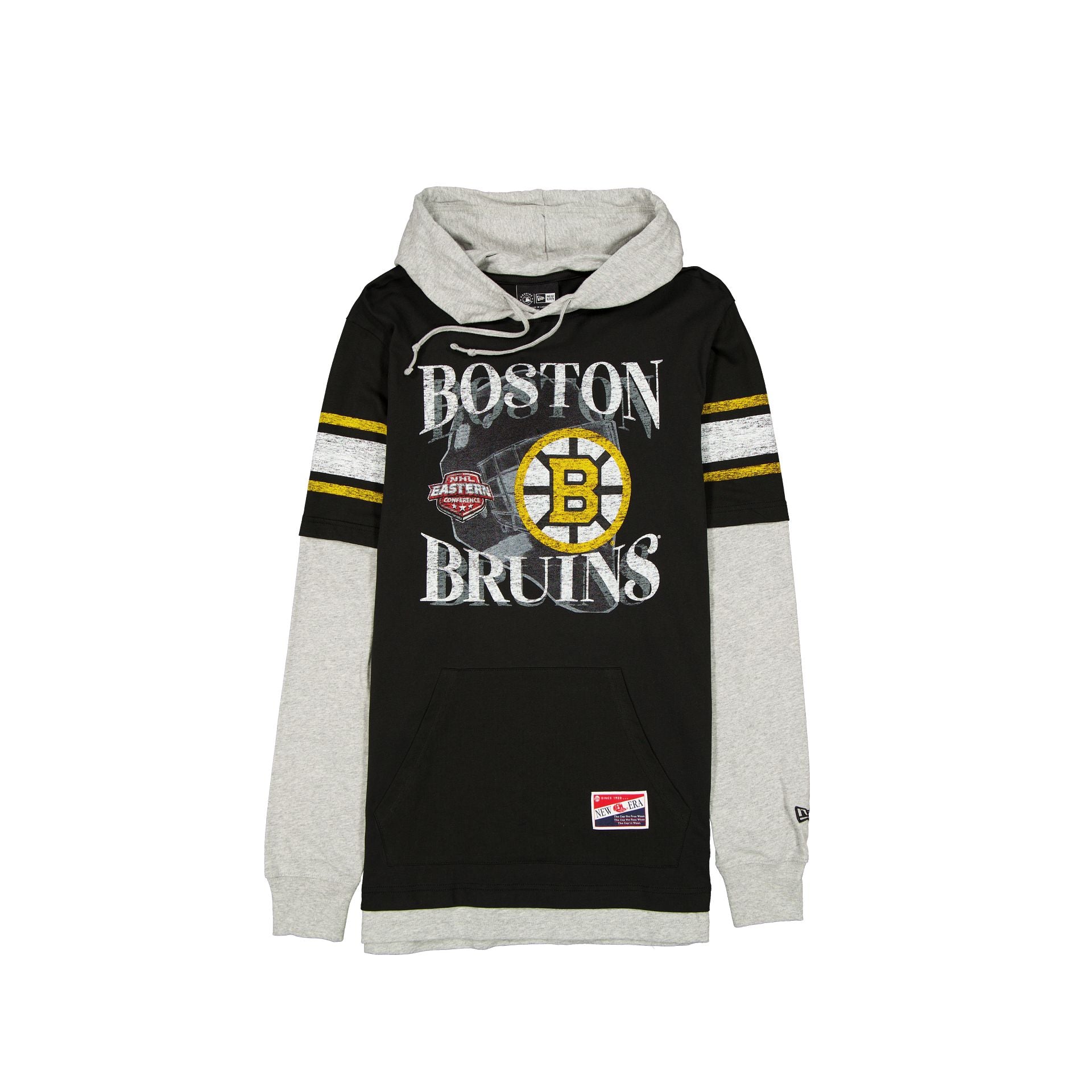 The Boston Bruins Twofer Throwback Hoodie features a screen-printed Bruins graphic at the front with kangaroo pockets and adjustable drawstrings at the hood.