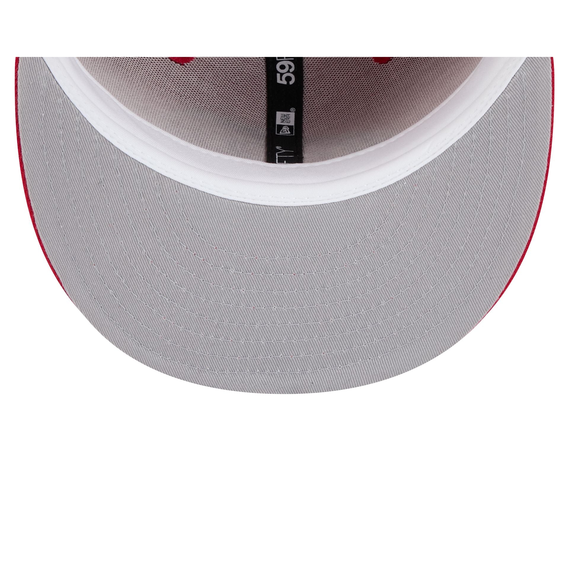 The Carolina Hurricanes Rear Wordmark 59FIFTY Fitted Cap features an embroidered Hurricanes logo at the front panels with a wordmark at the rear and a gray undervisor.