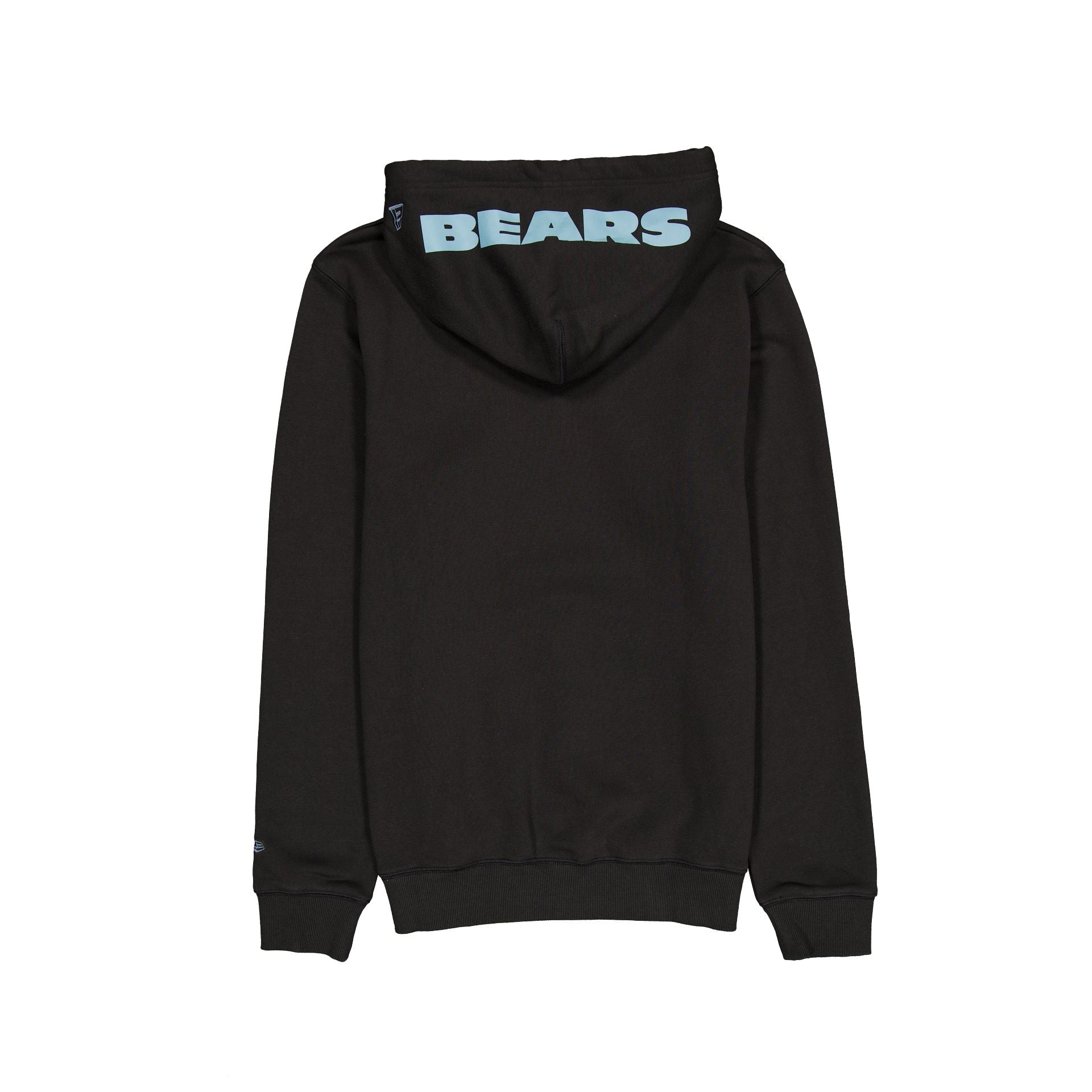The Chicago Bears Black Realtree Hoodie features an embroidered Bears reflective ink Realtree applique with kangaroo pockets. blue Realtree lining. and a team wordmark at the hood.