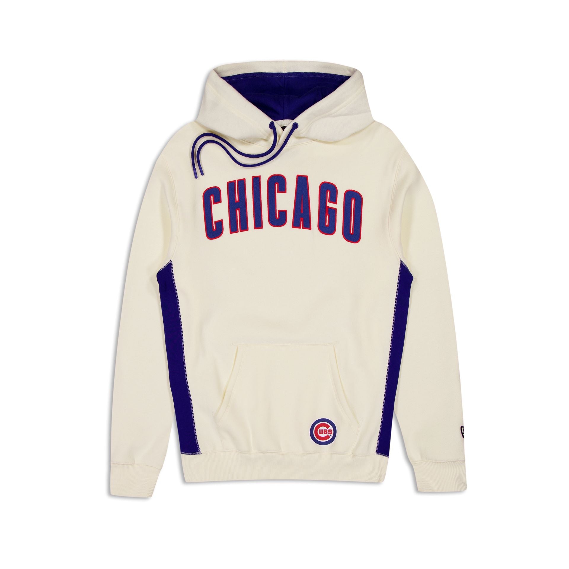 The Chicago Cubs Ballpark Classics Hoodie features an embroidered Cubs wordmark at the chest with a team logo screen-printed at the kangaroo pocket and team color details throughout.