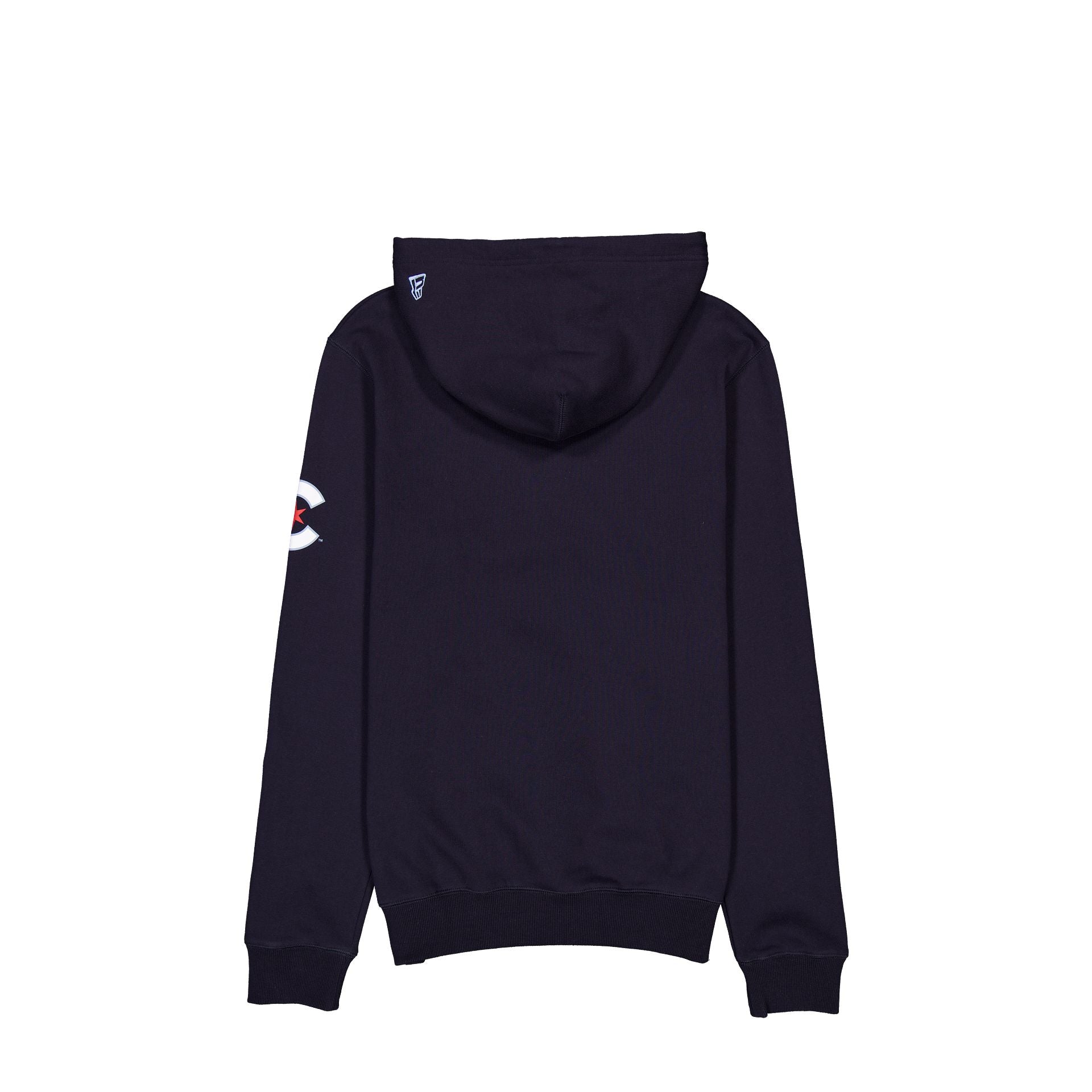 Jersey inspired. city connected. The Chicago Cubs City Connect Navy Hoodie features a screen-printed Cubs wordmark and logo at the front with an alternate team logo at the left-wear sleeve.