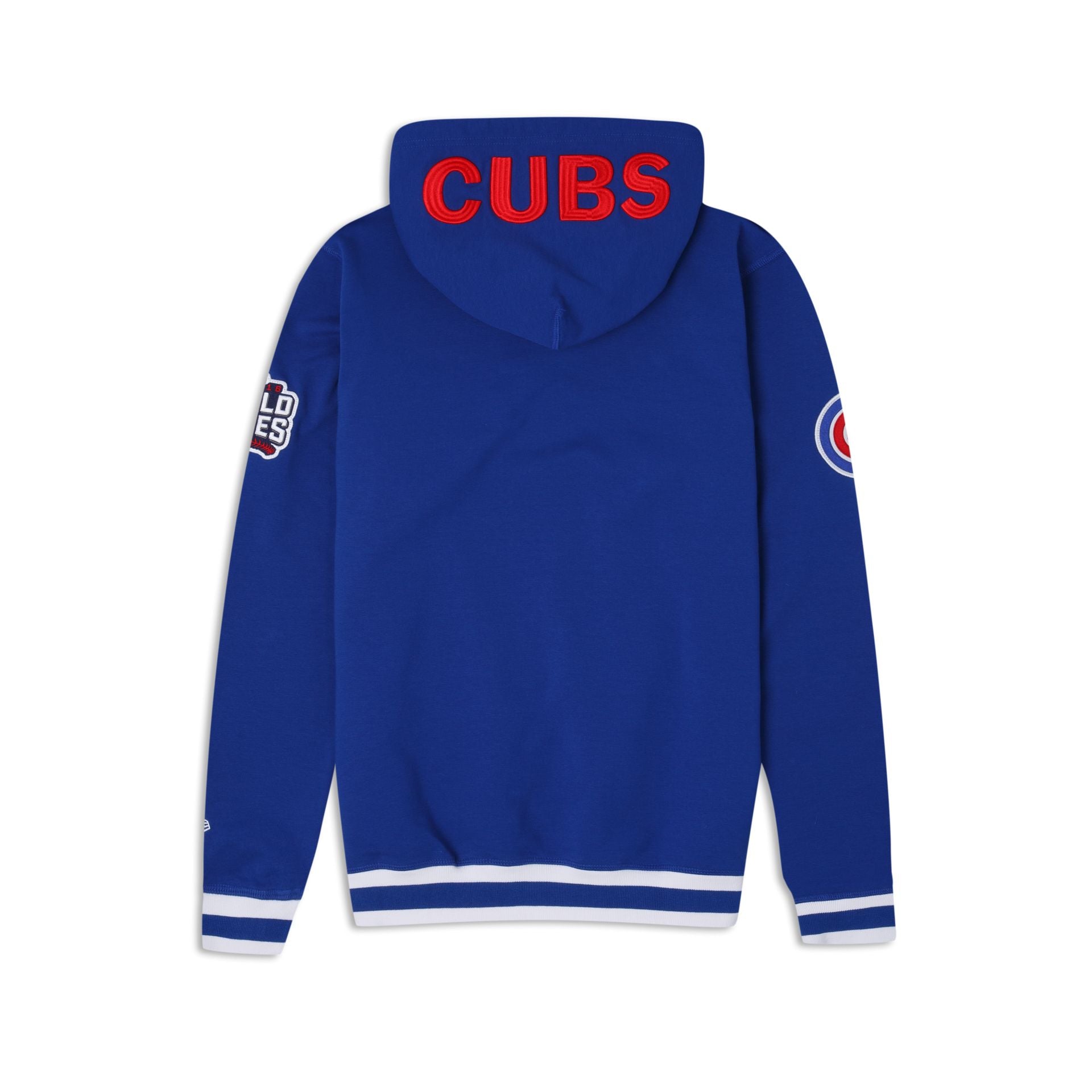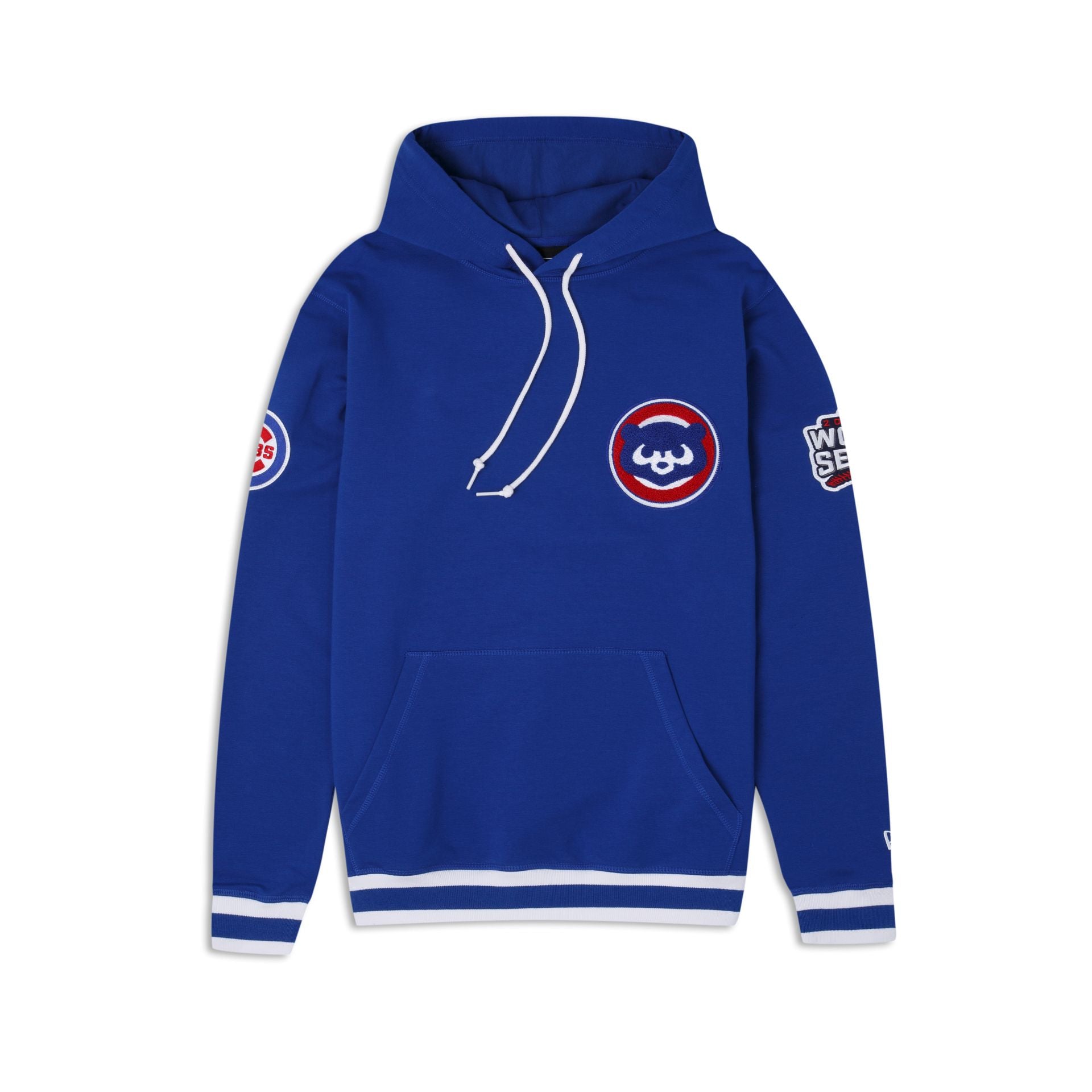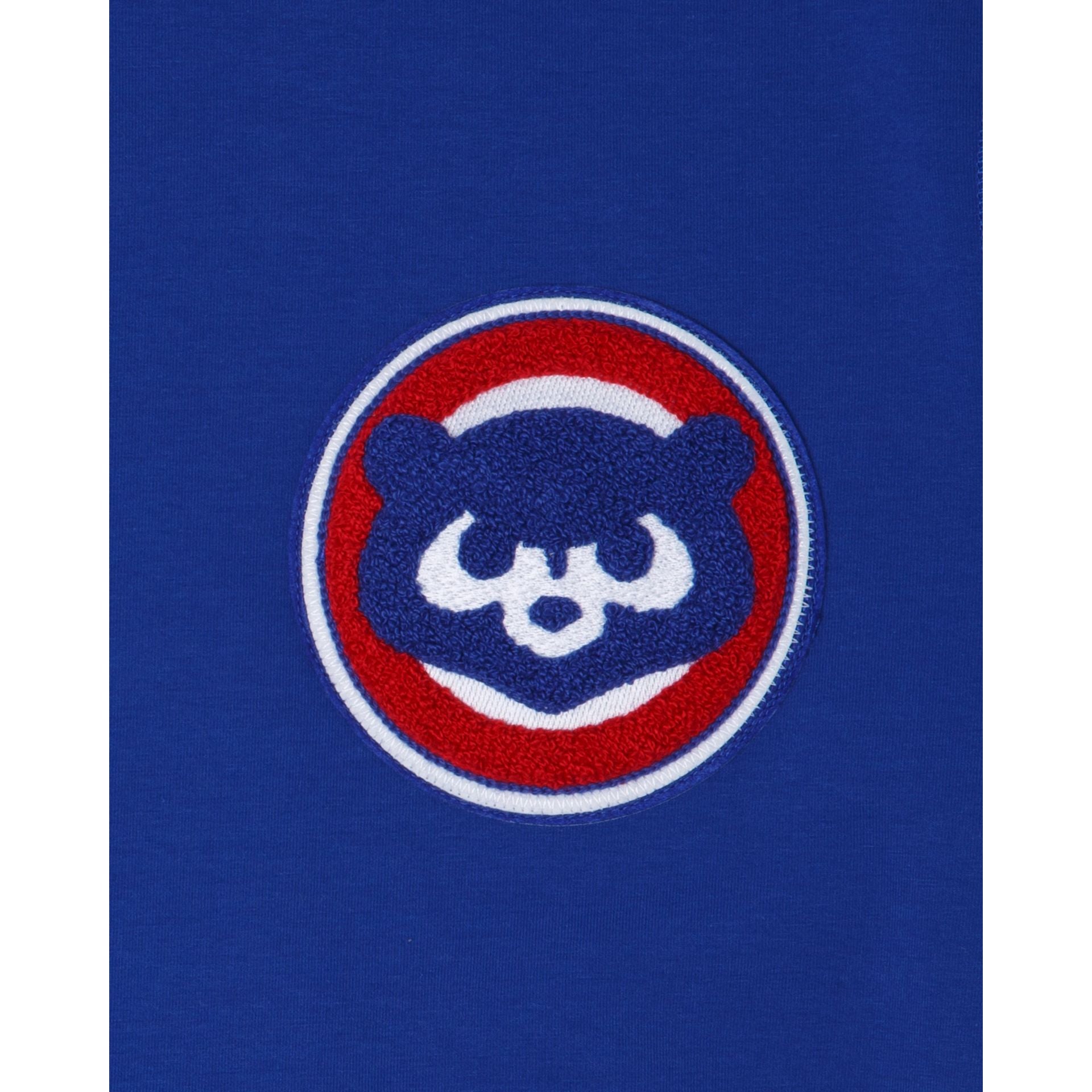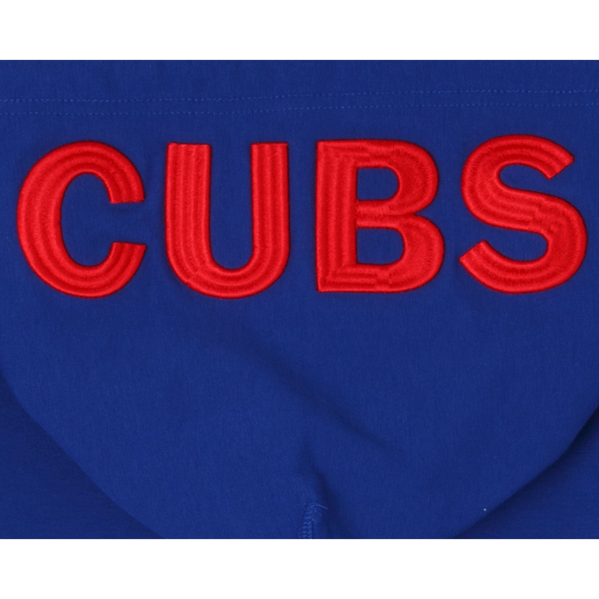 The Chicago Cubs Logo Select Hoodie features a chenille applique Cubs logo at the left chest with team patches at each sleeve and an embroidered team wordmark at the hood.