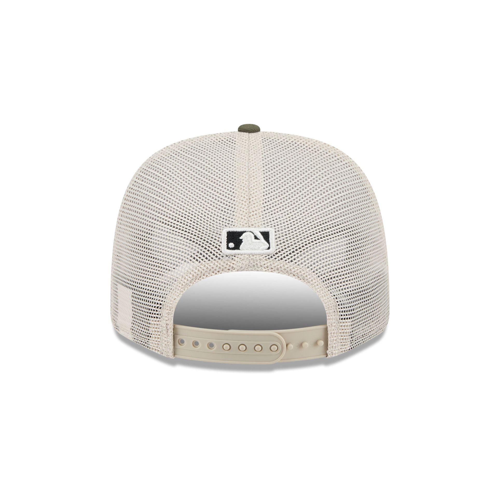 The Detroit Tigers Armed Forces Day 2025 9SEVENTY Trucker features an embroidered Tigers logo at the front panels with the American Flag embroidered at the right-wear side. Additional details include an MLB Batterman logo above a stretch-snap mesh closure at the rear and a black undervisor.