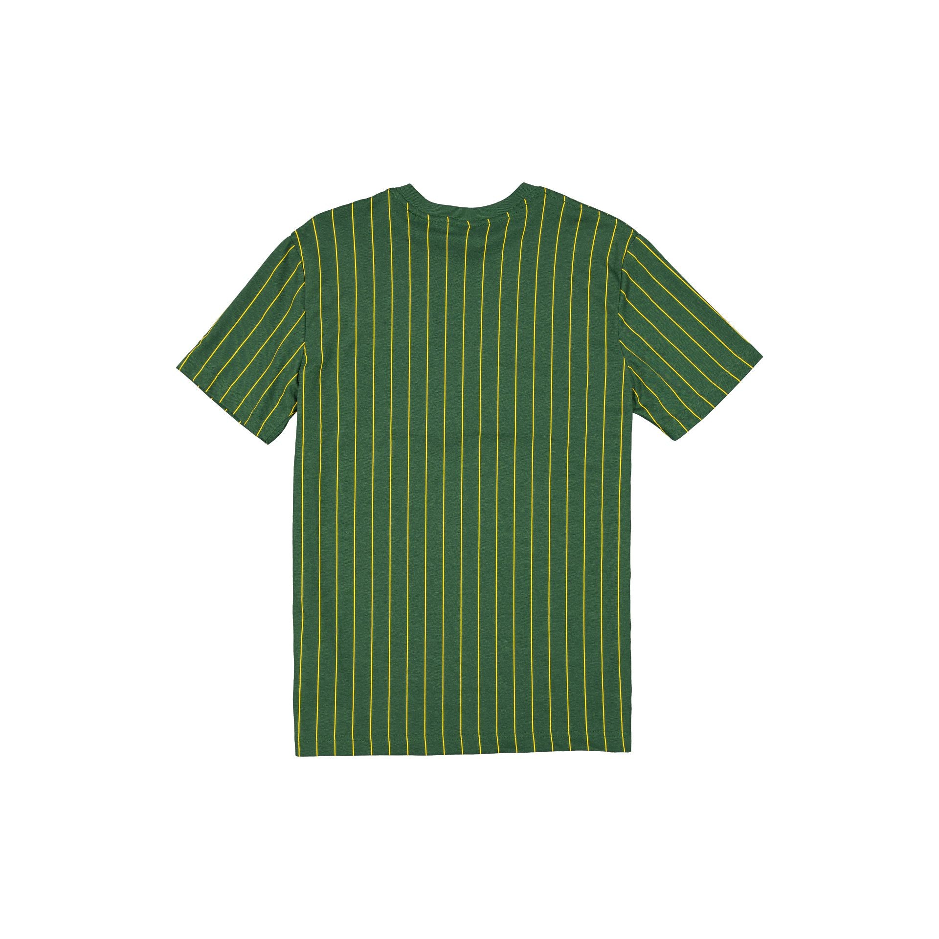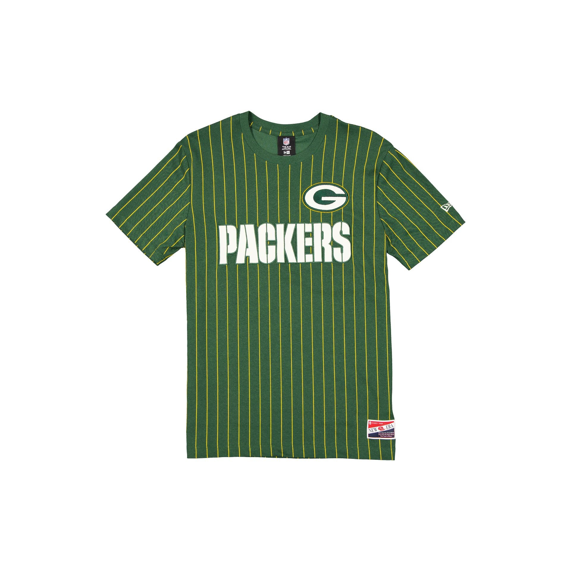 The Green Bay Packers Throwback Retro Pinstripe T-Shirt features an embroidered Packers wordmark at the front with a twill applique logo at the left chest.