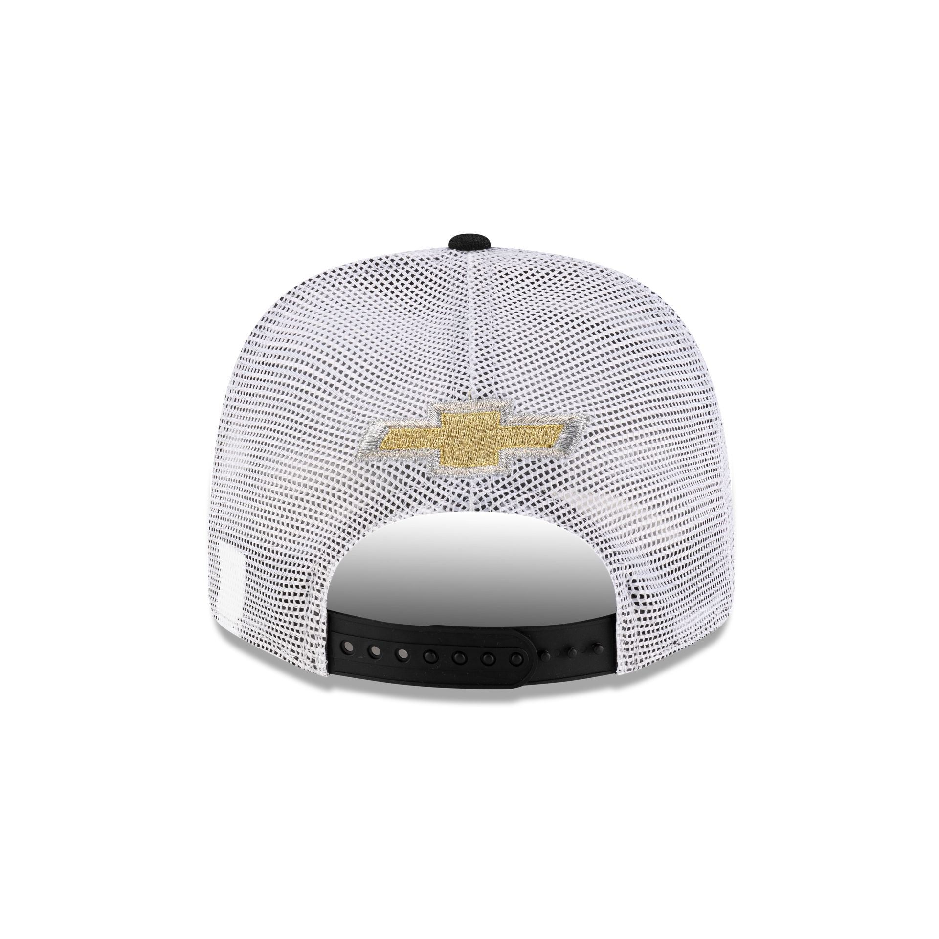 The Hendrick Motorsports William Byron Z HP Partner 9SEVENTY Stretch-Snap Trucker features an embroidered sponsor logo at the front panels with the driver’s number and Hendrick Motorsports logo at the right-wear side. Additional details include the Chevrolet logo above a snapback closure at a mesh rear.
