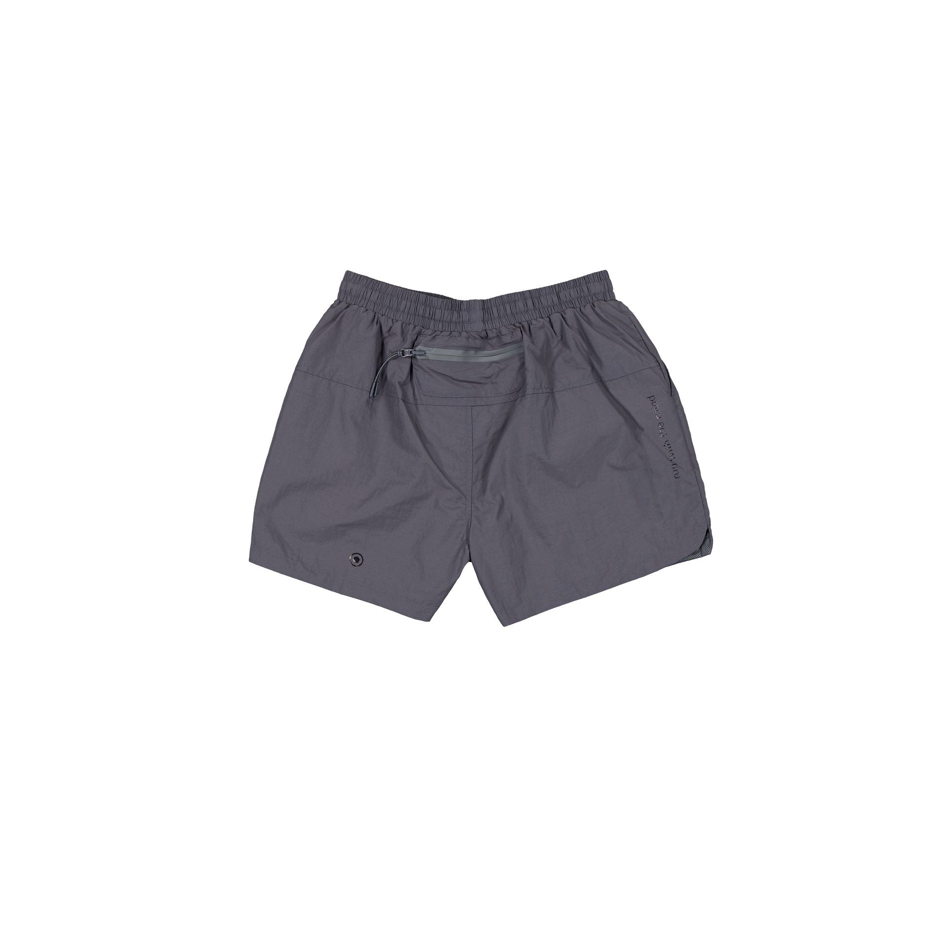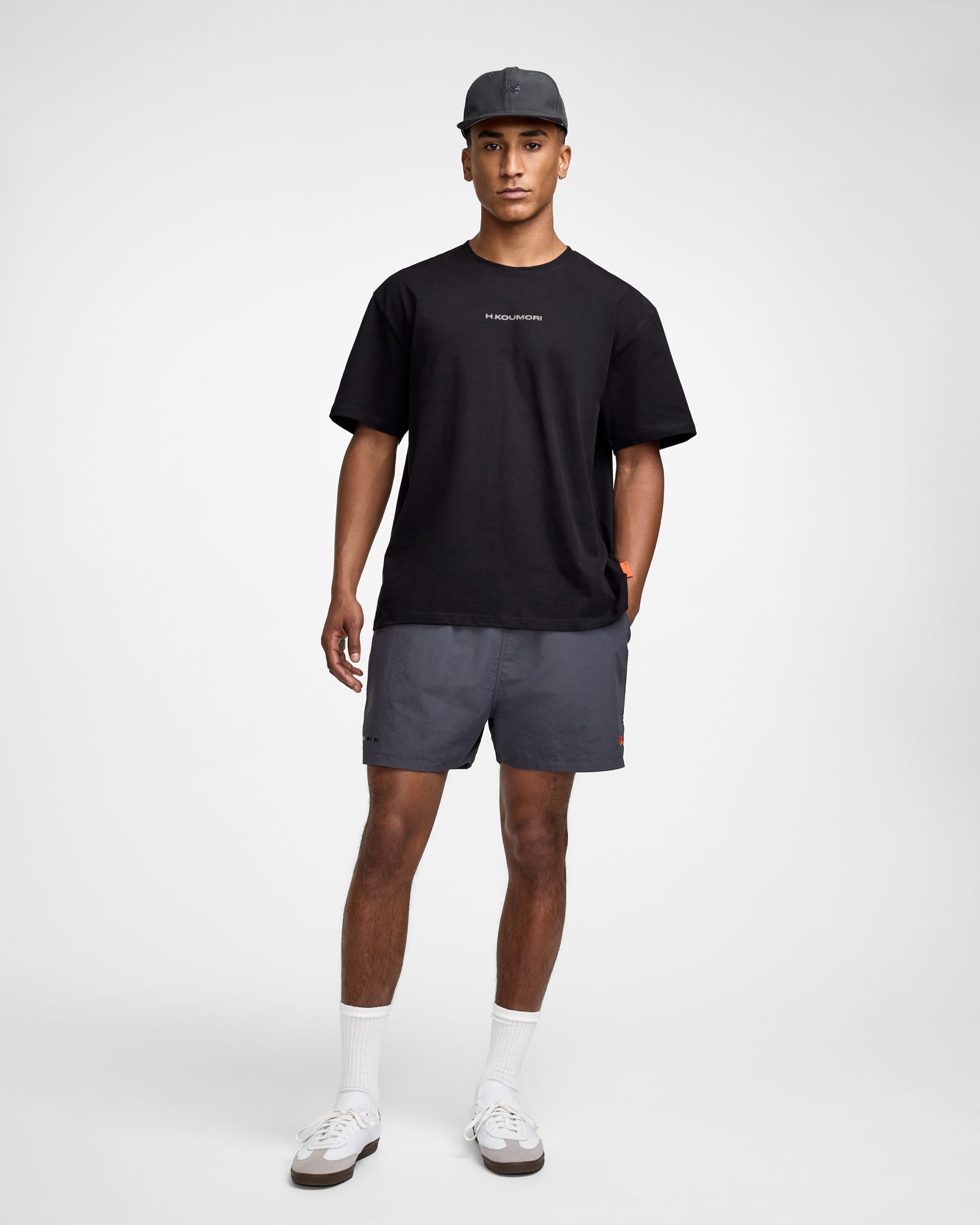The Hermanos Koumori Gray Shorts feature a screen-printed Hermanos Koumori Run with the Mind wordmark at the right leg.