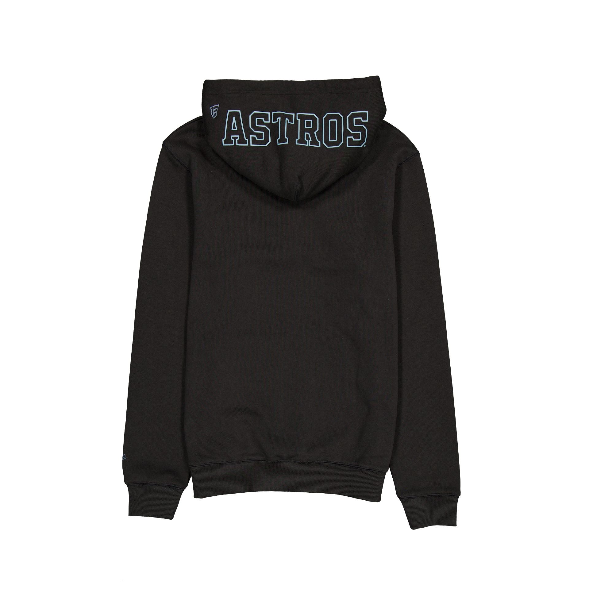 The Houston Astros Black Realtree Hoodie features an embroidered Astros reflective ink Realtree applique with kangaroo pockets. blue Realtree lining. and a team wordmark at the hood.