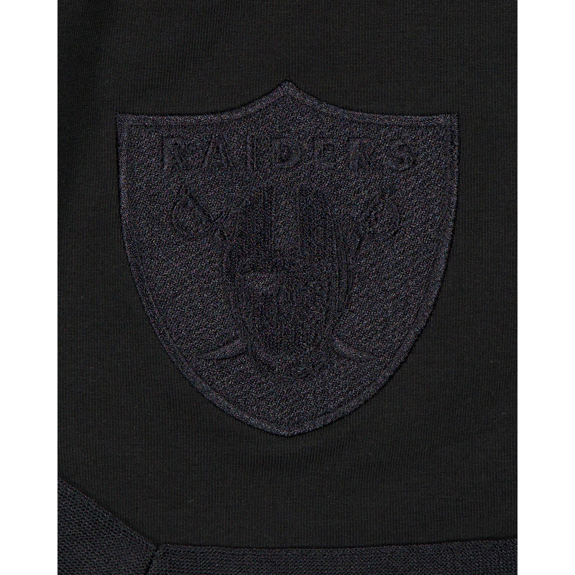The Las Vegas Raiders Black on Black Logo Select Shorts features an embroidered Raiders logo at the right-wear leg and a satin applique with a tonal stitch team wordmark at the rear left leg.