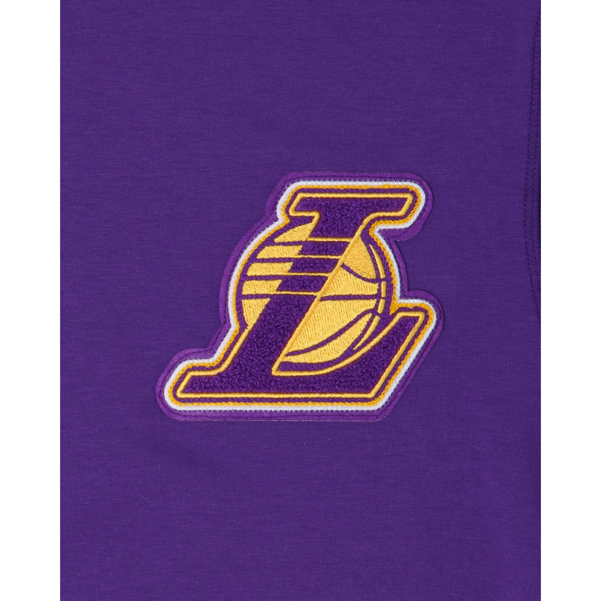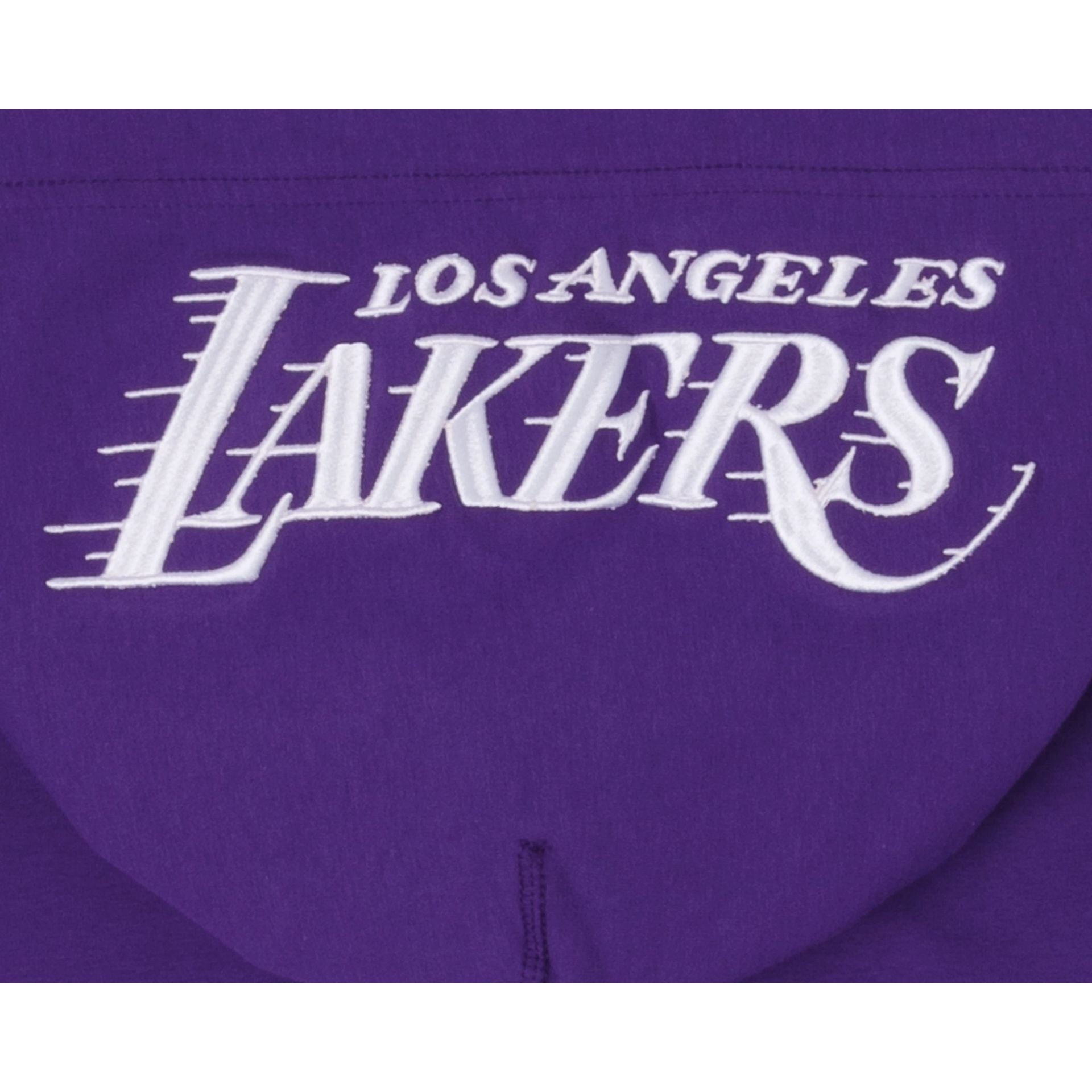 The Los Angeles Lakers Logo Select Hoodie features a chenille applique Lakers logo at the left chest with team patches at each sleeve and an embroidered team wordmark at the hood.