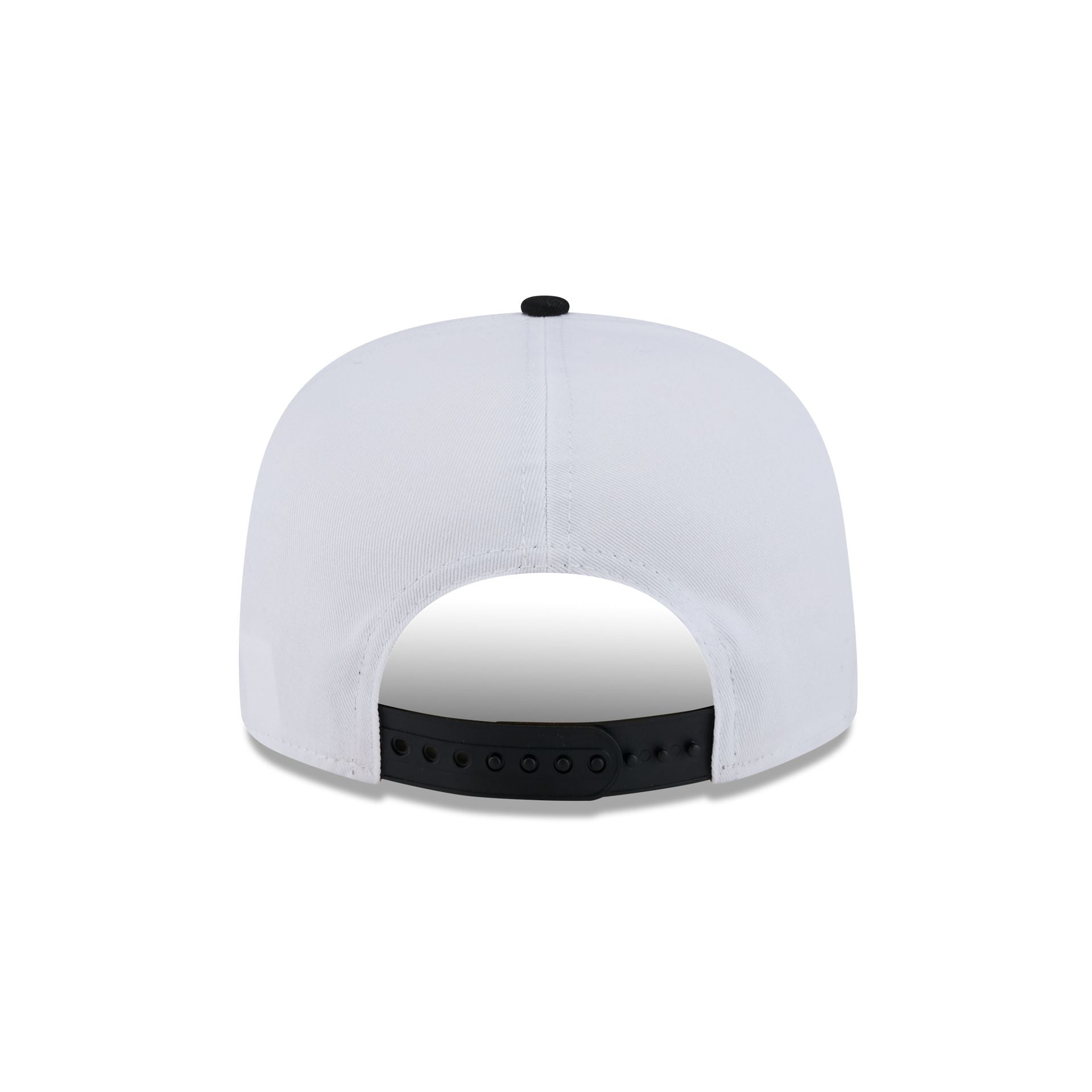 The MLB World Series 2001 Championship Pin Golfer features an embroidered 2001 World Series patch with dueling Arizona Diamondbacks and New York Yankees pins and team wordmarks at the front panels. Additional details include a black visor with green undervisor and an adjustable snapback closure at the rear.