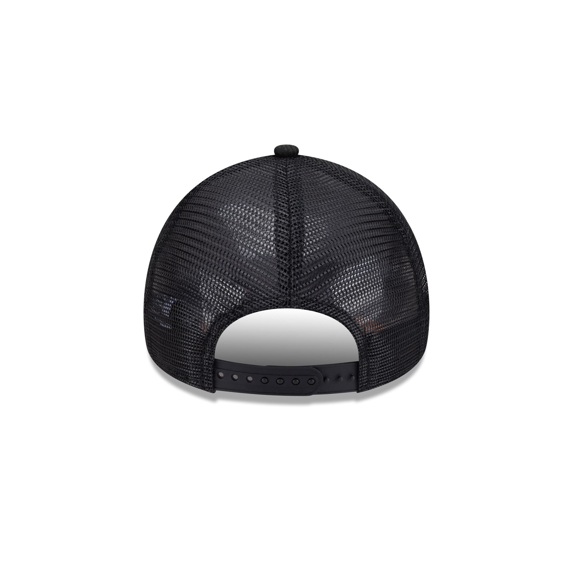 The MoneyGram Haas F1 Team Corduroy 9FORTY A-Frame Trucker features an embroidered Haas F1 Team logo at the front panels with an adjustable snapback closure at a mesh rear.