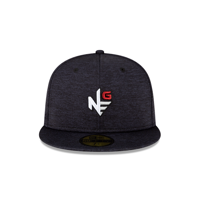 The New Era Golf Navy 59FIFTY Fitted Cap features an embroidered New Era Golf logo at the front panels with a corresponding wordmark at the rear and a gray undervisor.