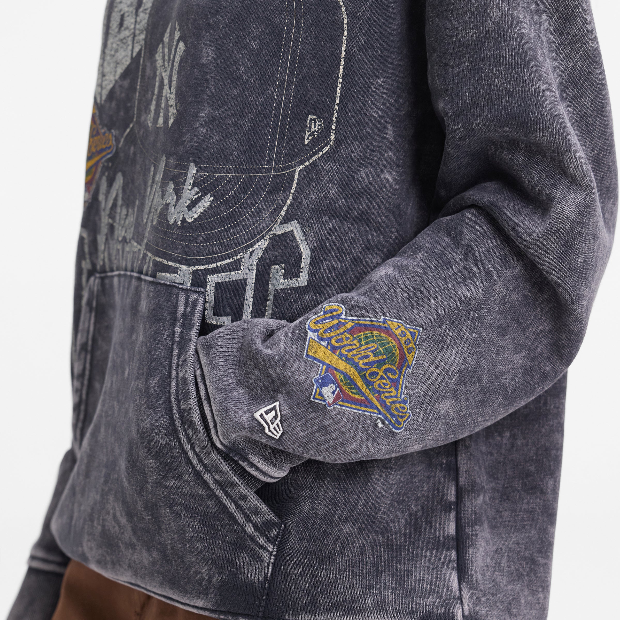 The New York Mets Sport Classics Washed Hoodie features a screen-printed Mets Cooperstown graphic at the front with kangaroo pockets and adjustable drawstrings at the hood.