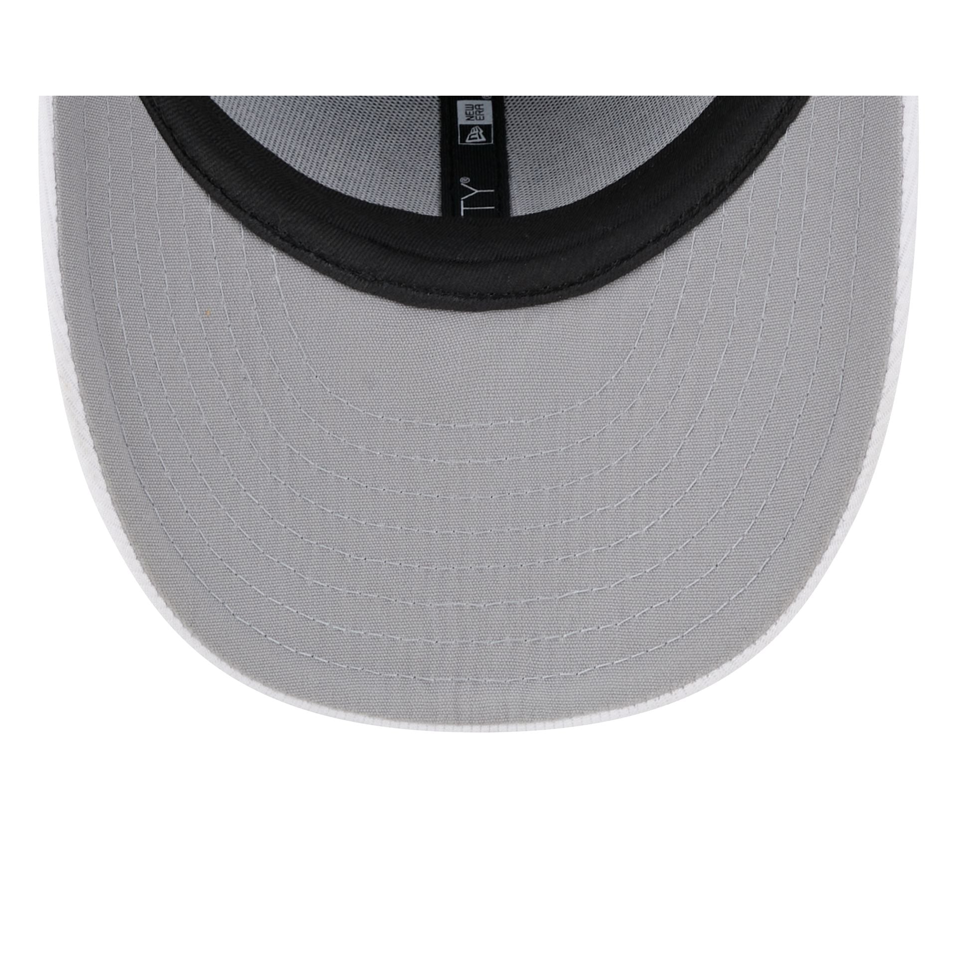 The New York Yankees 2025 Batting Practice Low Profile 59FIFTY Fitted Cap features an embroidered Yankees logo at the front panels with a matching MLB Batterman logo at the rear. Additional details include a pivot knit fabrication. a white visor. and a gray undervisor.