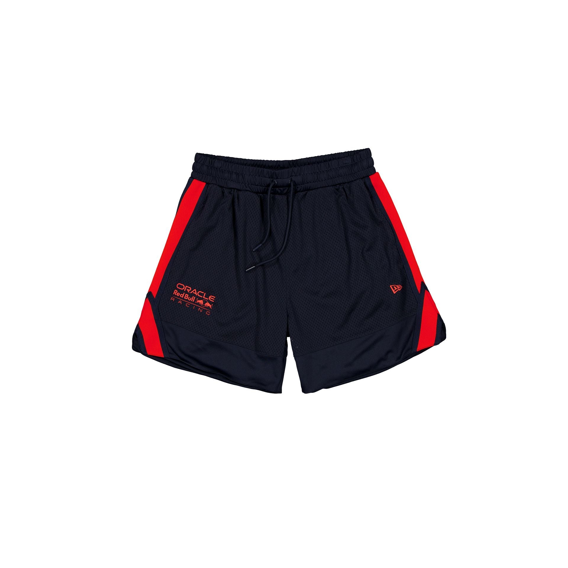 The Oracle Red Bull Racing Nightsky Navy Basketball Shorts feature a screen-printed Red Bull logo at the right leg with pockets and adjustable drawstrings.