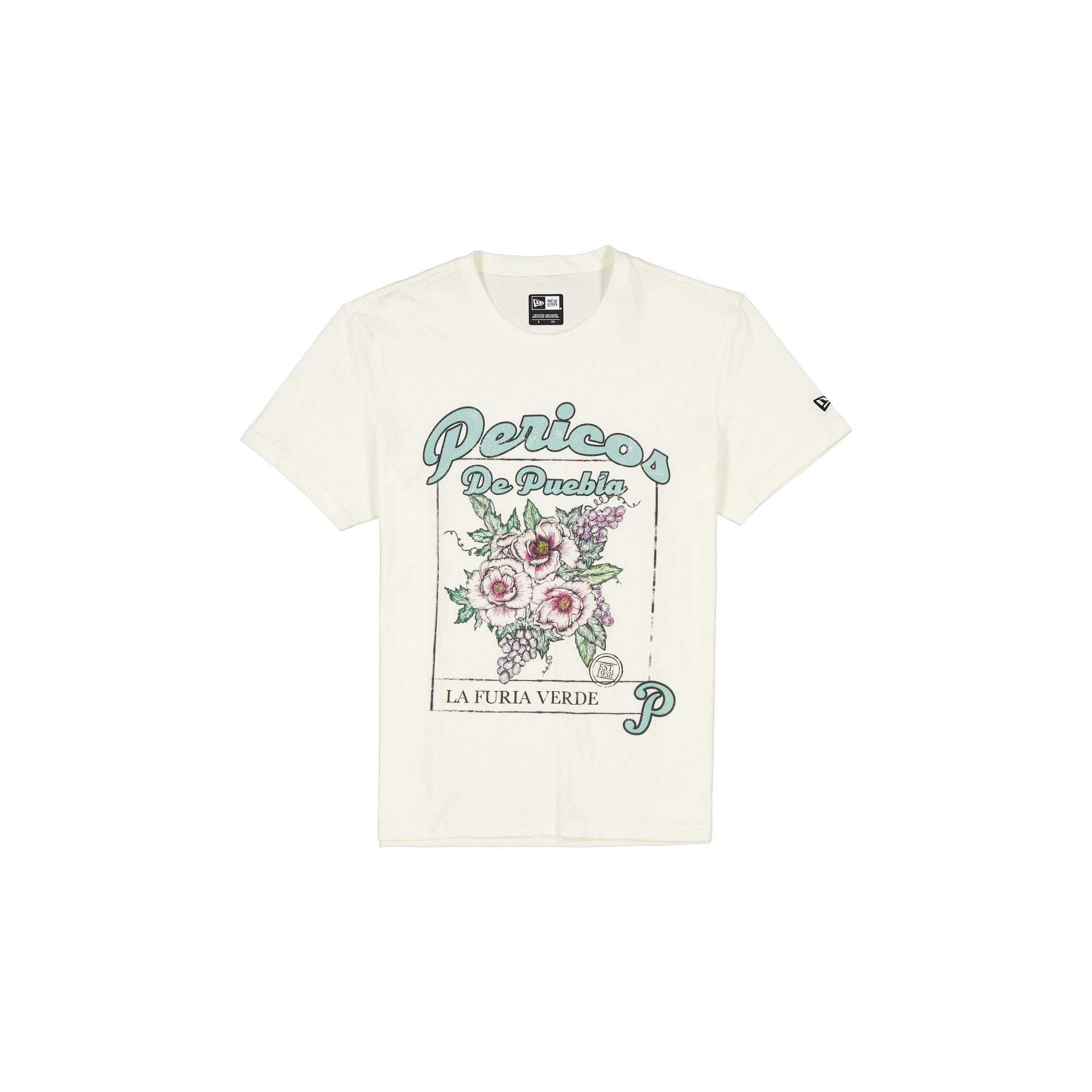 The Pericos de Puebla Stone Floral T-Shirt features a screen-printed Pericos floral graphic at the front.
