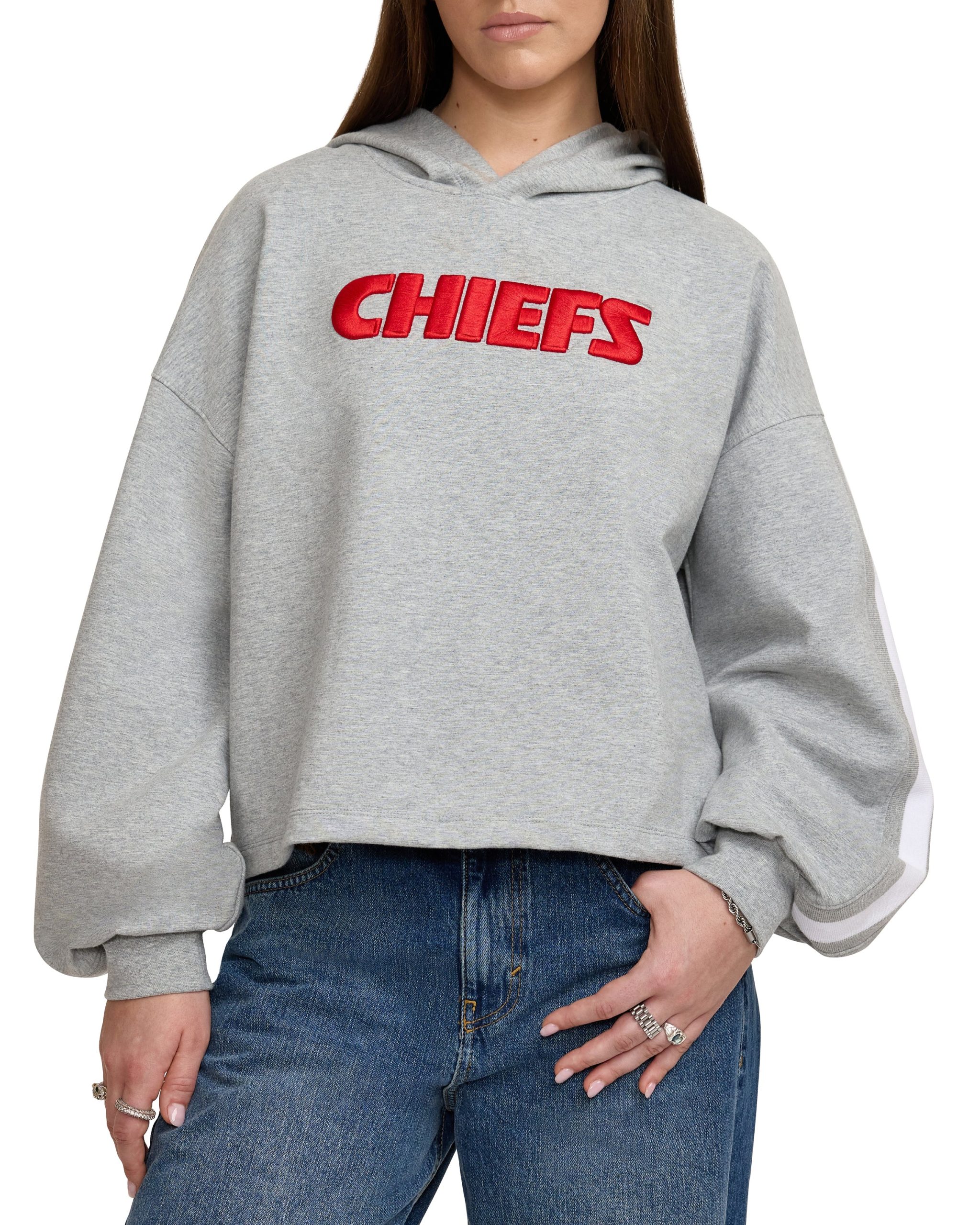 The Philadelphia Eagles Gray Logo Select Women’s Hoodie features an embroidered Eagles wordmark at the front panels with a drawstring closure at the hem.