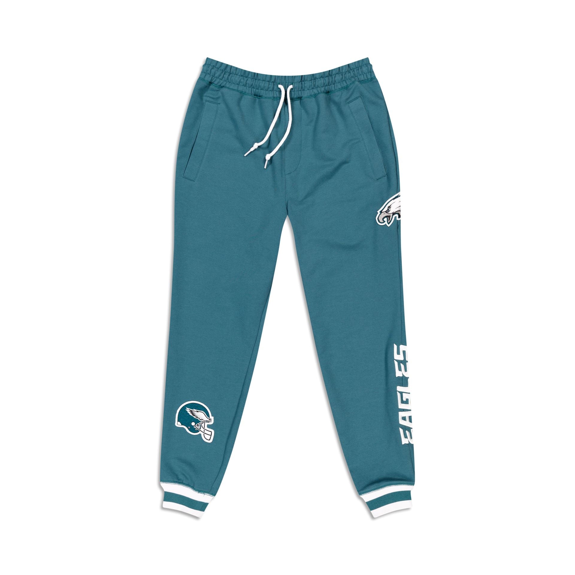 The Philadelphia Eagles Logo Select Jogger features a chenille applique Eagles logo and embroidered wordmark at the left leg with an alternate team logo at the right ankle.