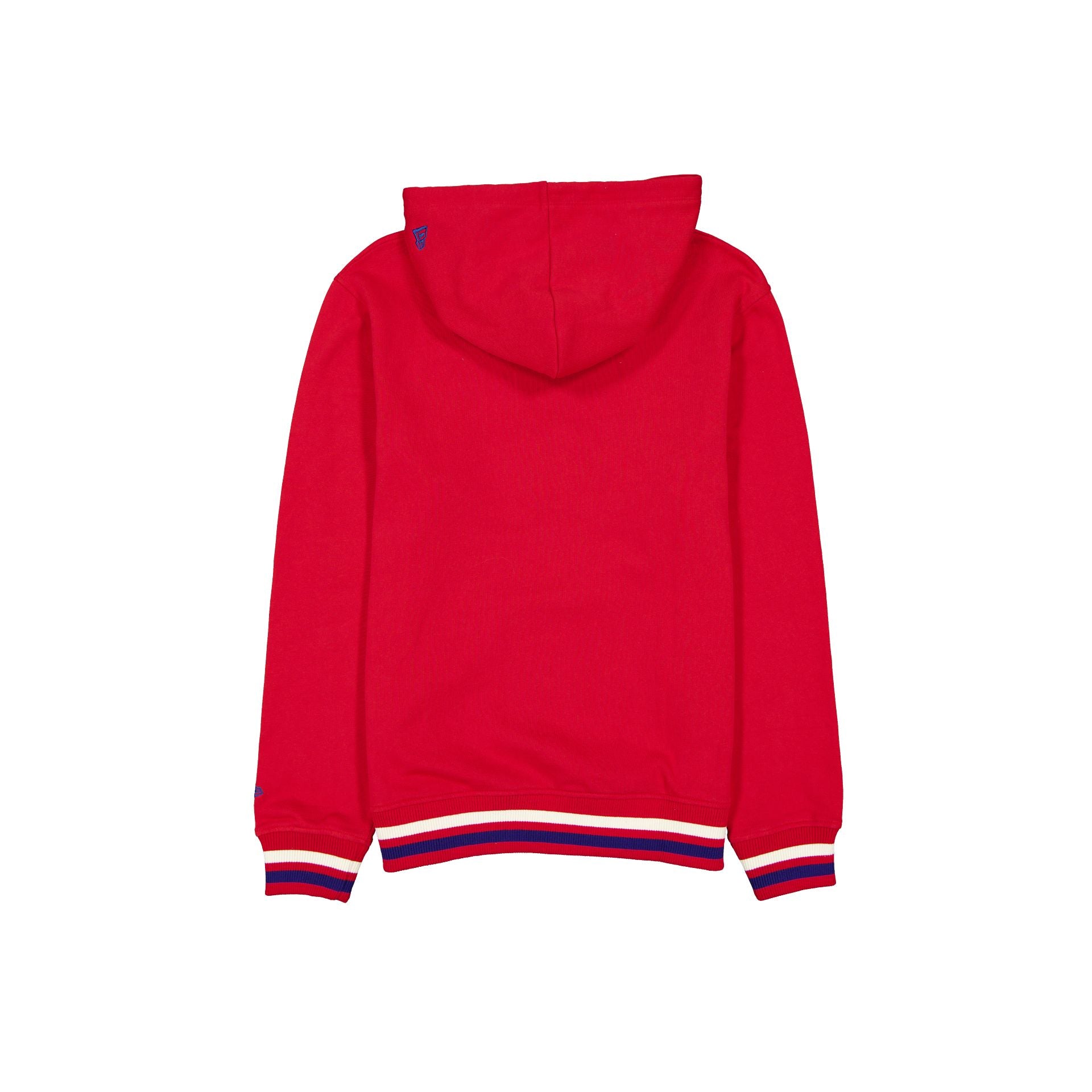 The Philadelphia Phillies Throwback Hoodie features a felt applique Phillies wordmark at the front with kangaroo pockets. adjustable drawstrings at the hood. and a New Era jock tag at the left pocket.