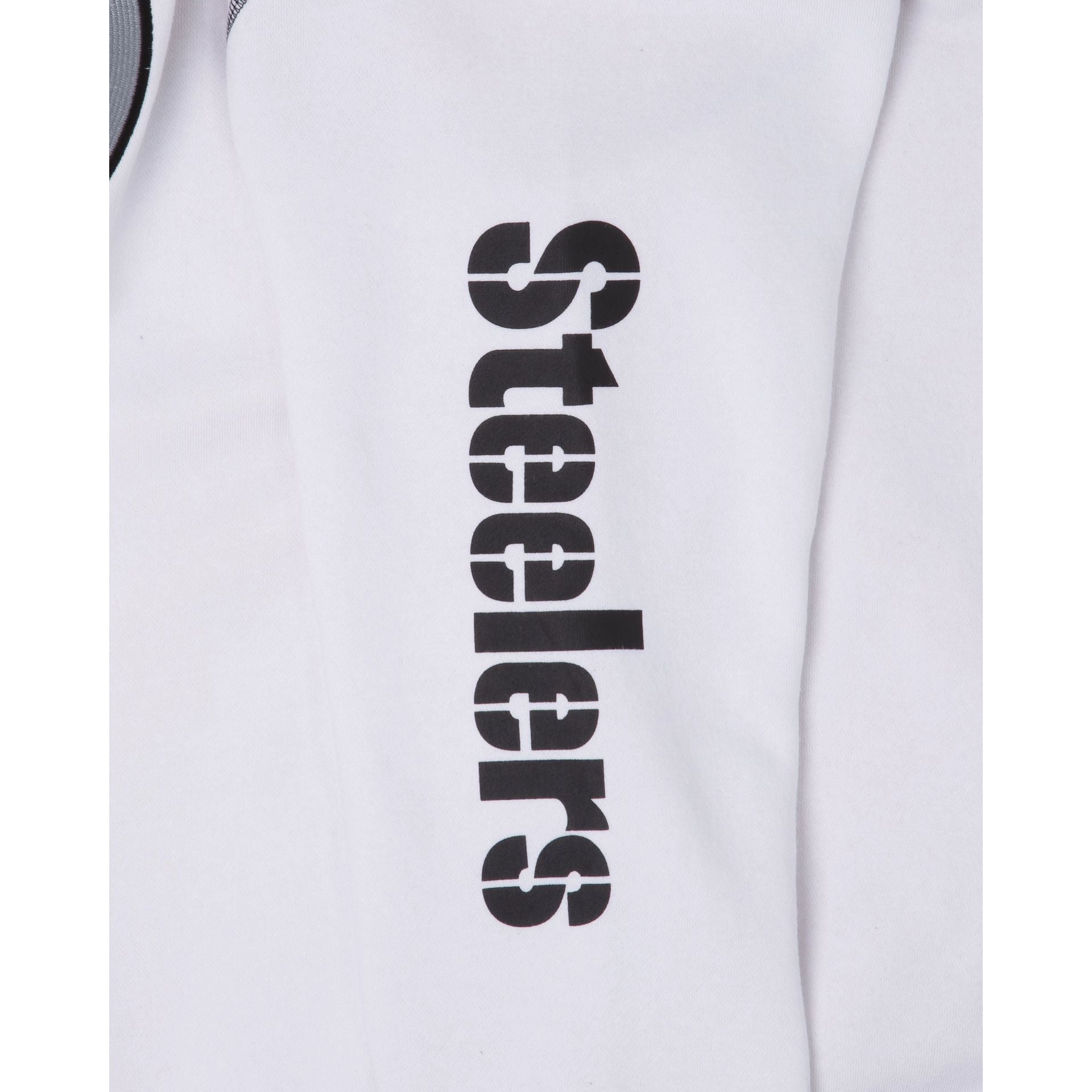 The Pittsburgh Steelers 3rd Down Hoodie features a satin stitch applique Steelers logo at the front with a screen-printed team wordmark at the left?sleeve and two side pockets.