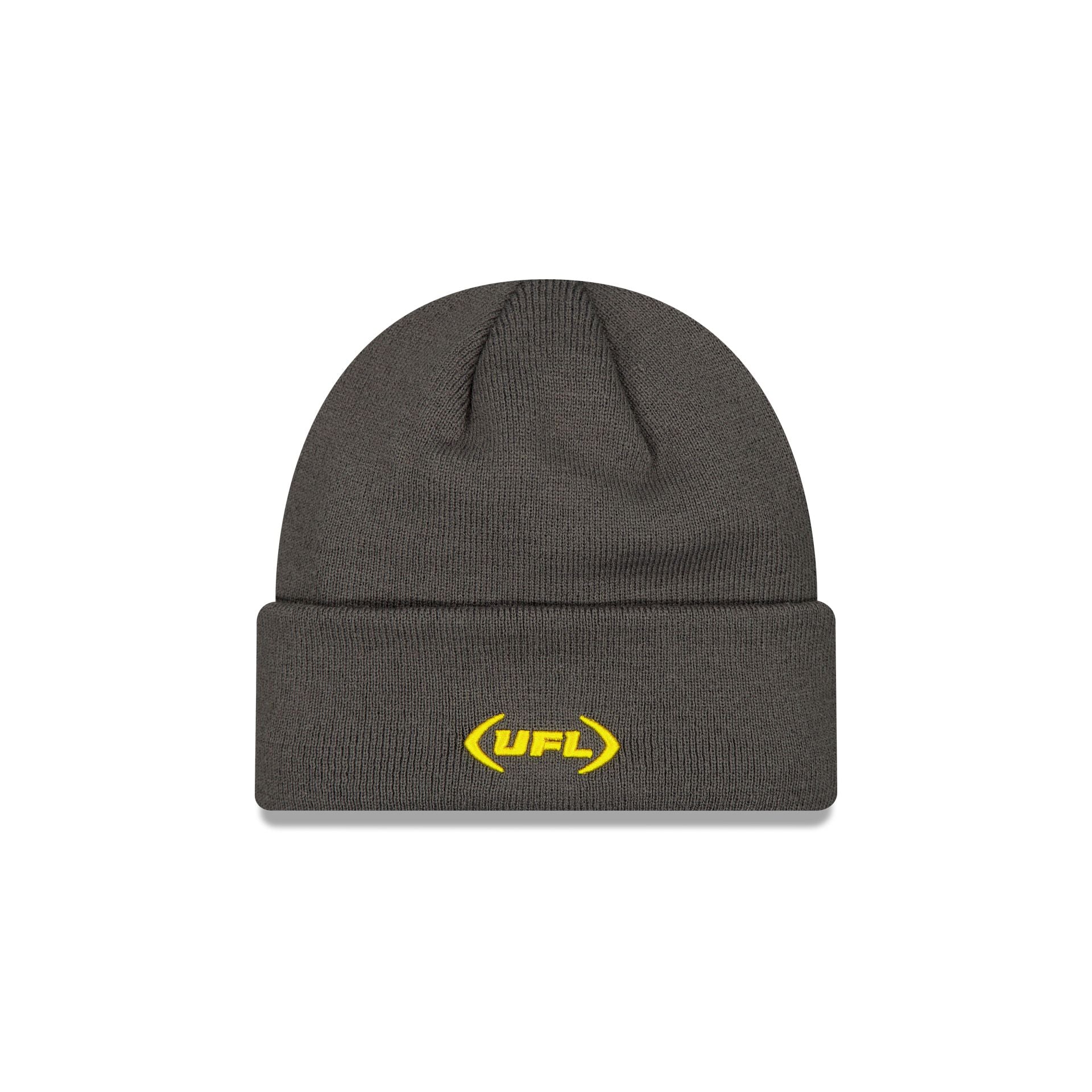 The San Antonio Brahmas Gray Cuff Knit Beanie features an embroidered Brahmas logo at the front cuff with a UFL logo at the rear.