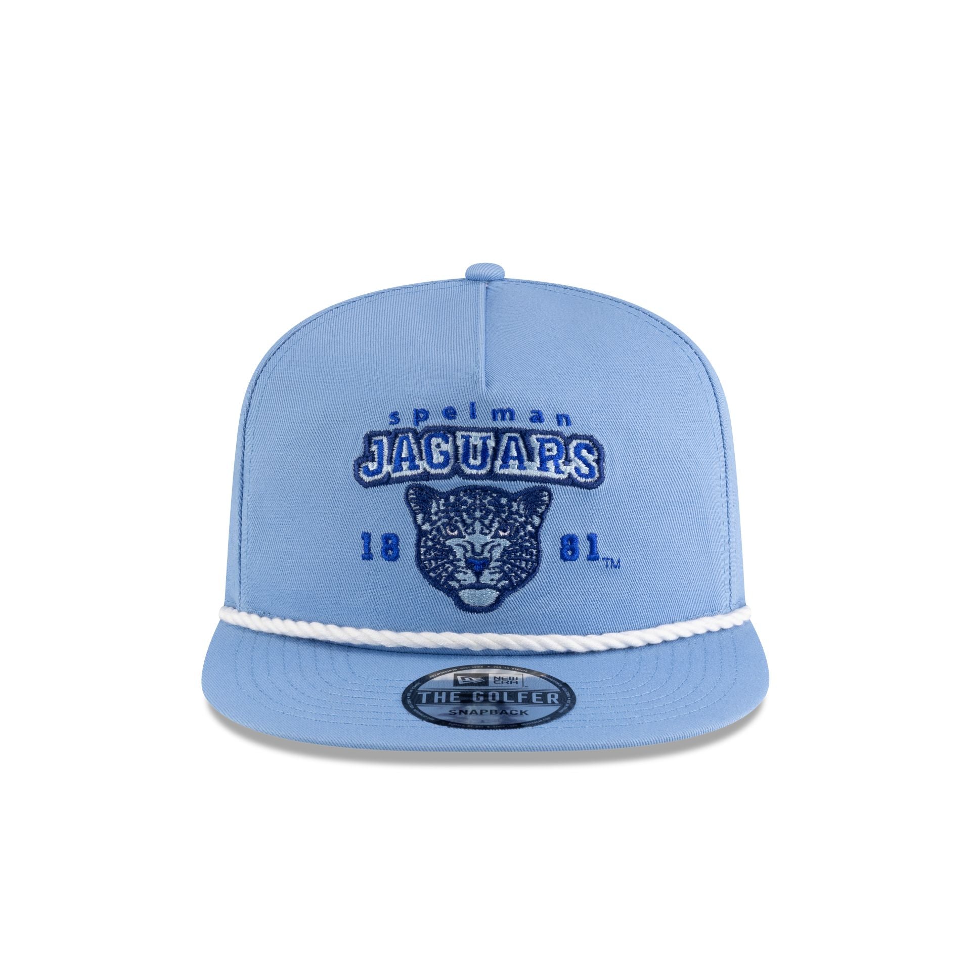 The Spelman Jaguars Golfer features an embroidered Jaguars logo at the front panels with a team wordmark at the right-wear side. a snapback closure at the rear. and a gray undervisor.