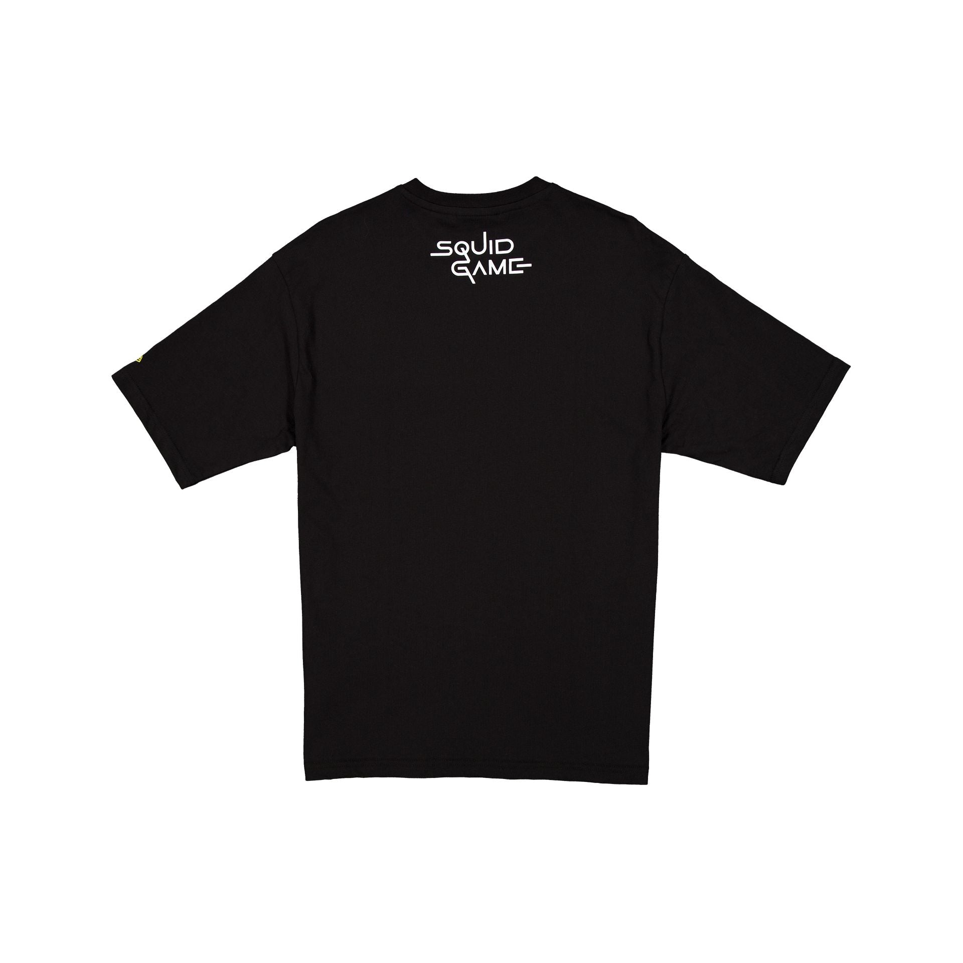 The Squid Game Black T-Shirt features a screen-printed Squid Game New Era graphic at the front with Squid Game logo at the rear.